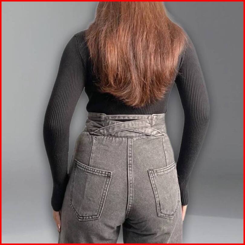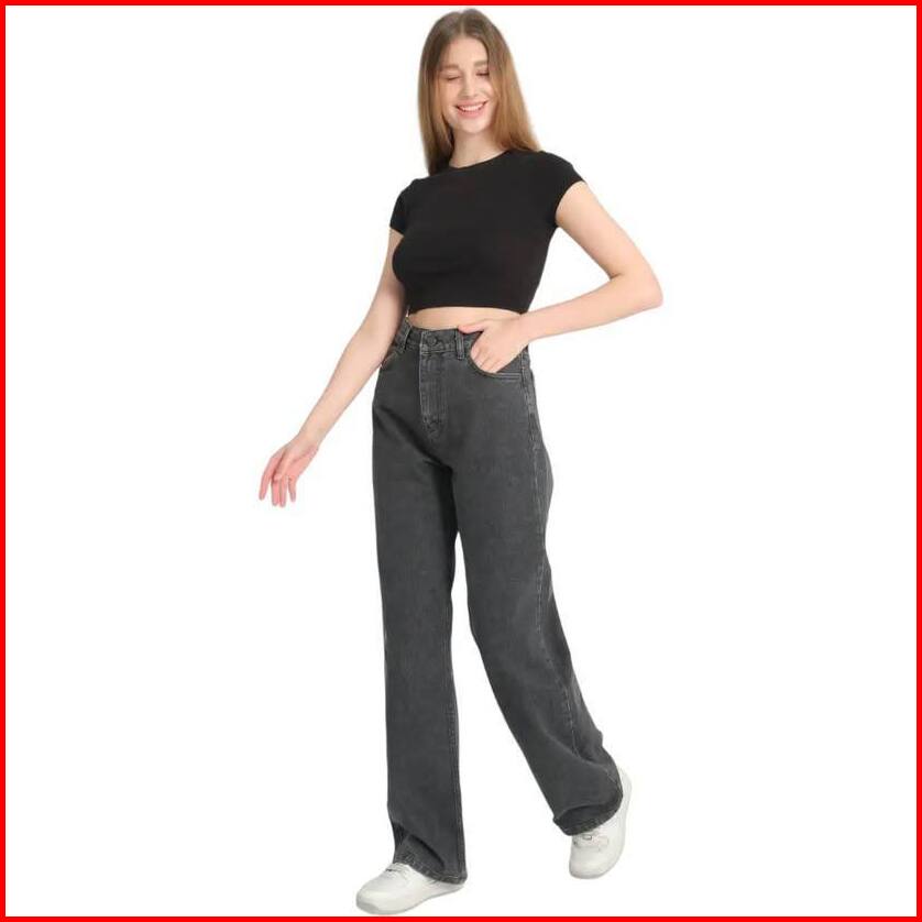 Celana Panjang Highwaist Kulot Jeans Wanita J183 Double Button 2 - Highwaits Loose Jeans - Celana Kulot Silang Premium