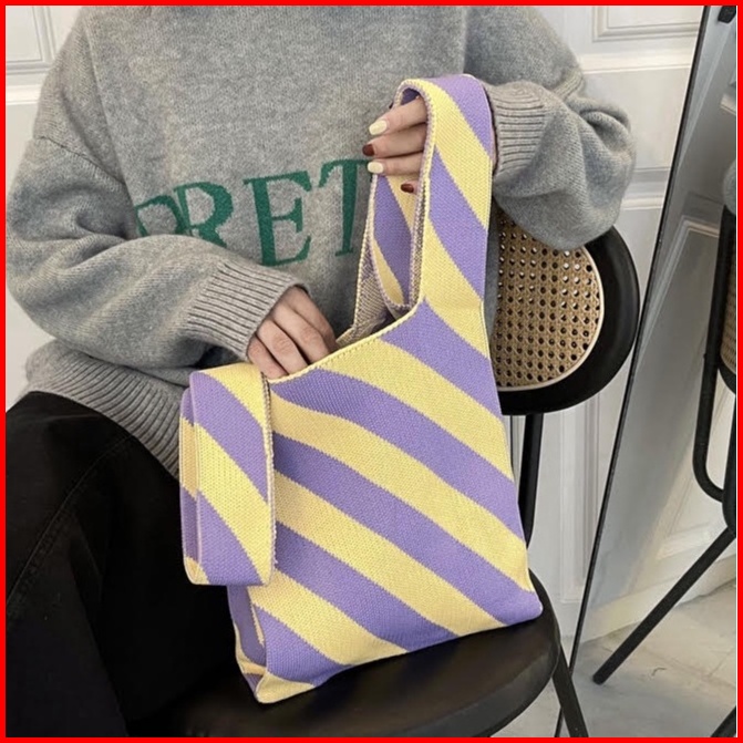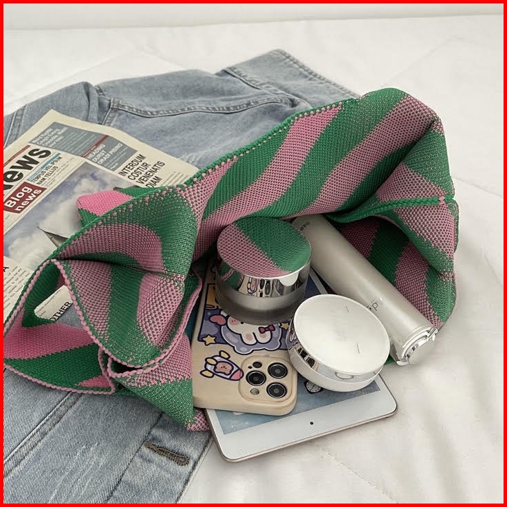 Clearance Dalmi Chloe Handmade Tote Bag Korean Look Tas Jinjing Bahan Rajut Premium Stretchable - Ch897