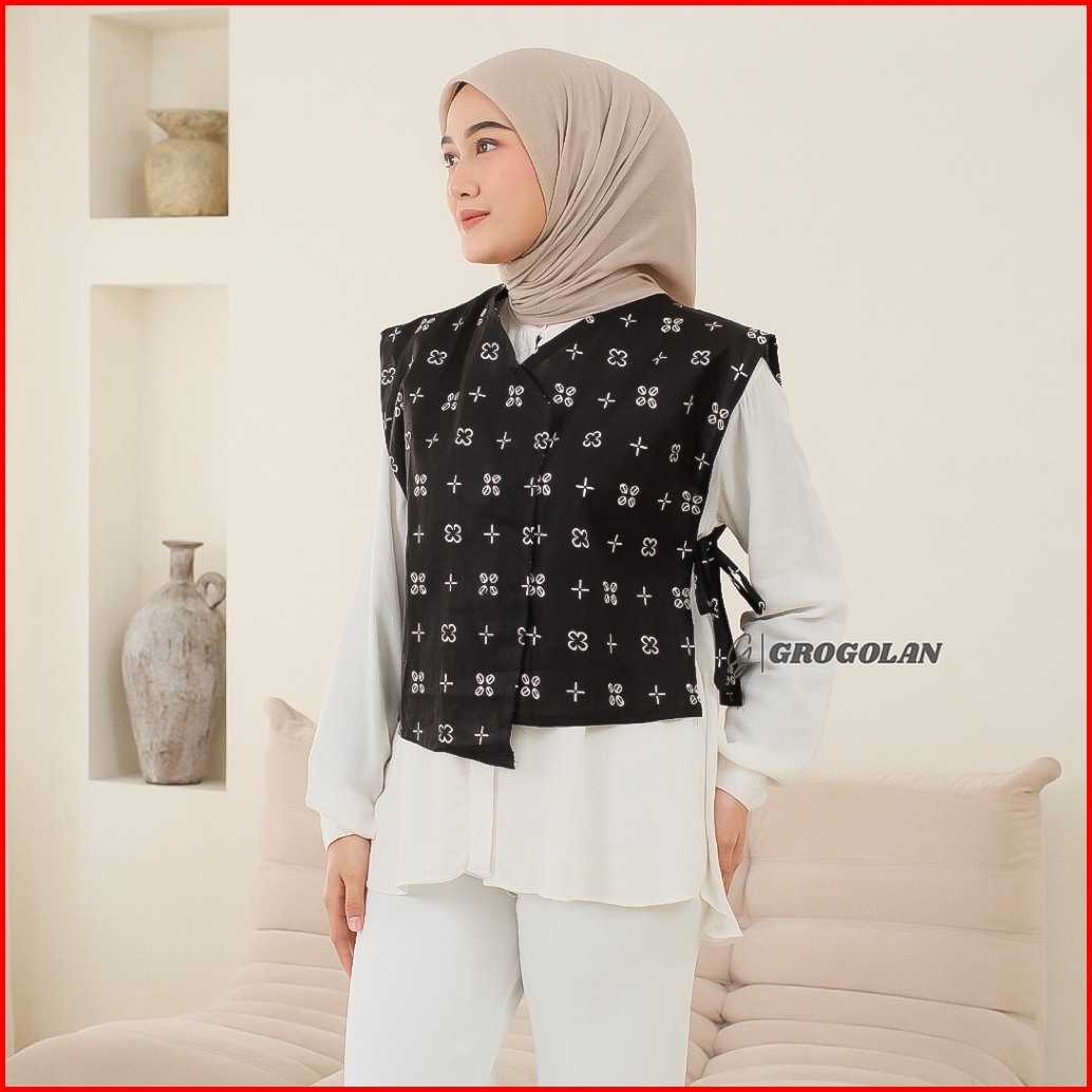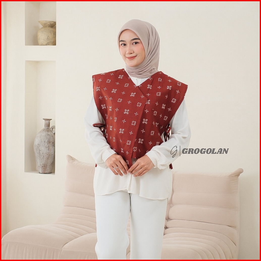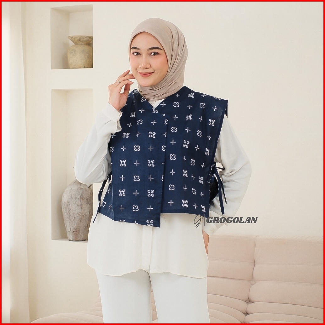 Grogolan Vest Outer Rompi Batik V Neck Atasan Wanita