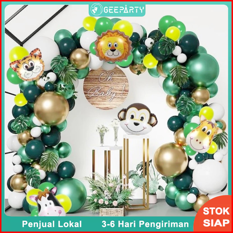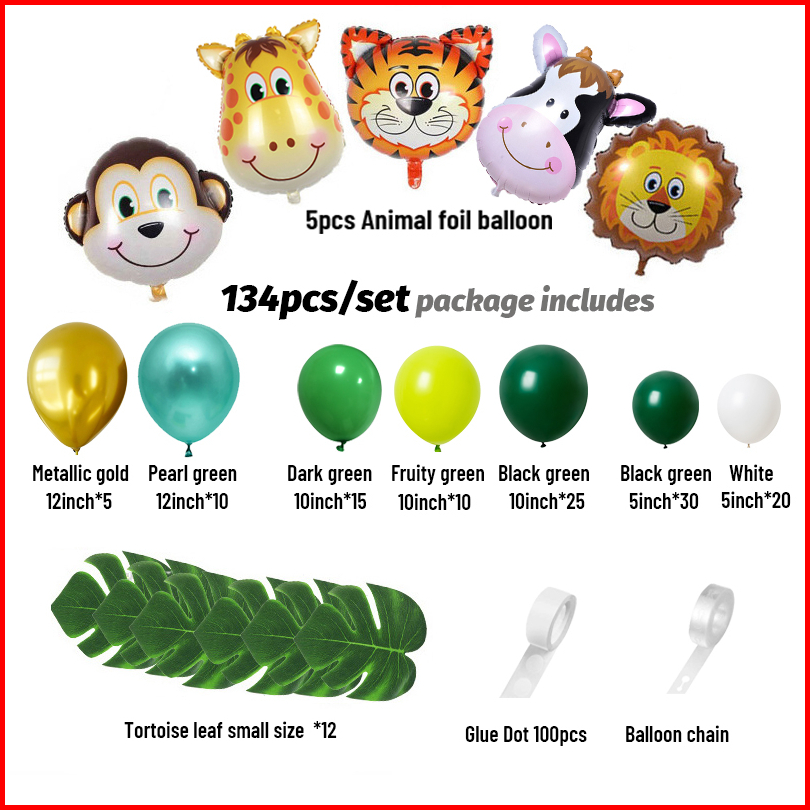 134 Pcs Hutan Hewan Liar Bertema Pesta Balon Garland Kubah Perlengkapan Pesta Dekorasi Ulang Tahun