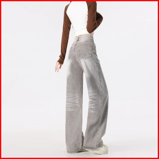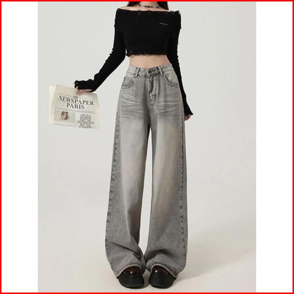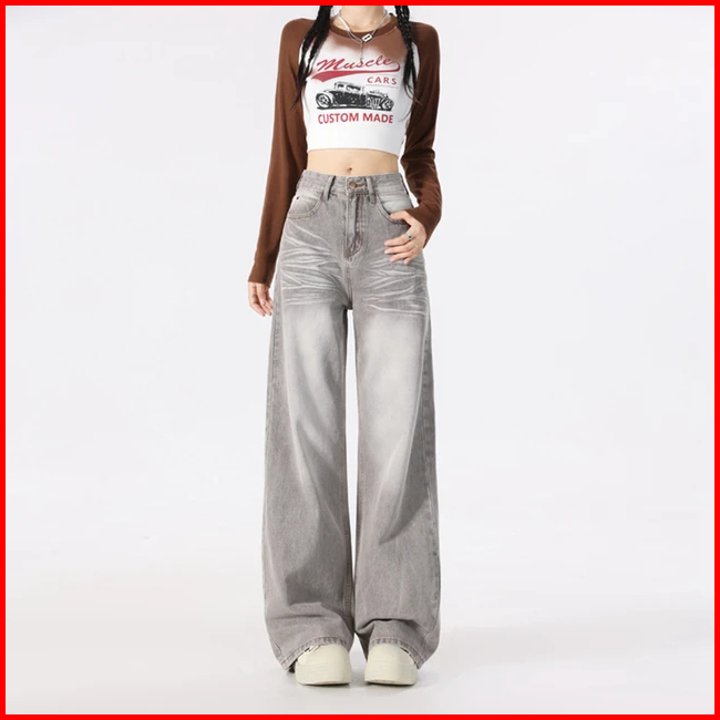 Flowy - Emijia Women Grey Jeans Harajuku 90s Vintage Y2k Baggy Pants Jeans Denim Style 2024