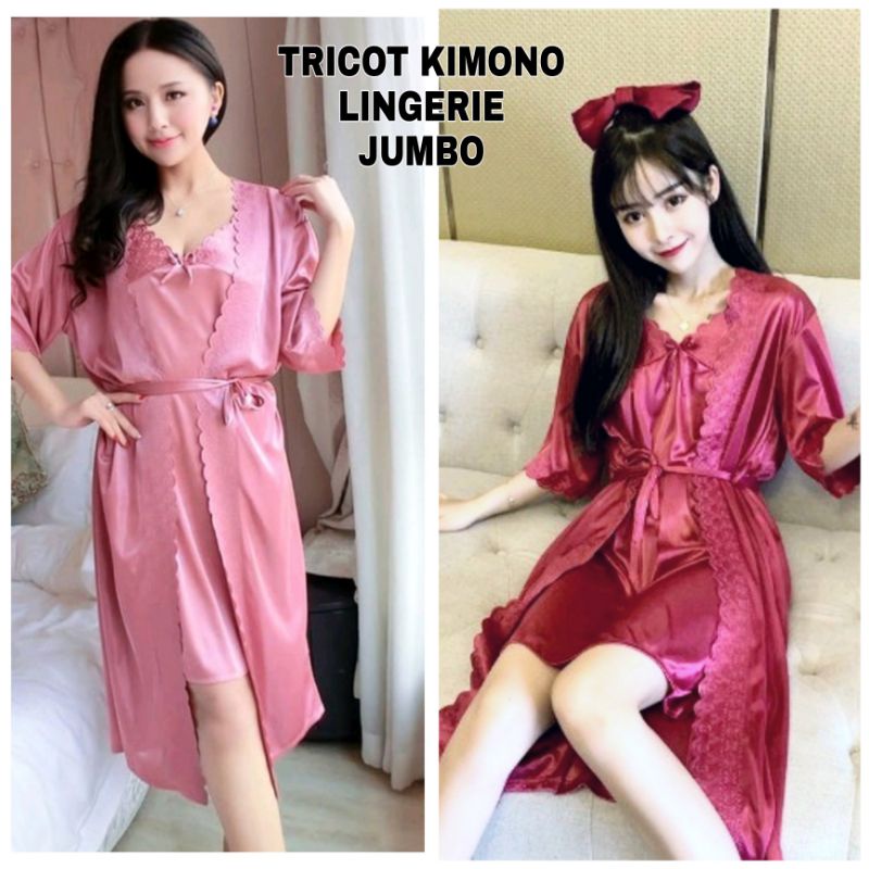 BAJU TIDUR KIMONO LINGERIE SEXI 2IN1 JUMBO TRICOT SATIN IMPORT