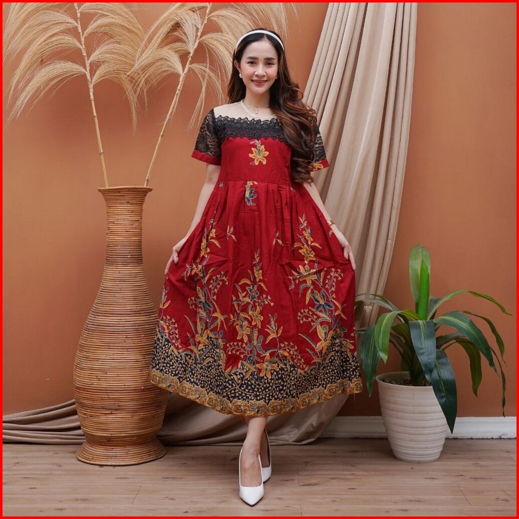 Dress Batik Pesta Elegan Couple Kemeja Lengan Pendek Dress Renda Tille