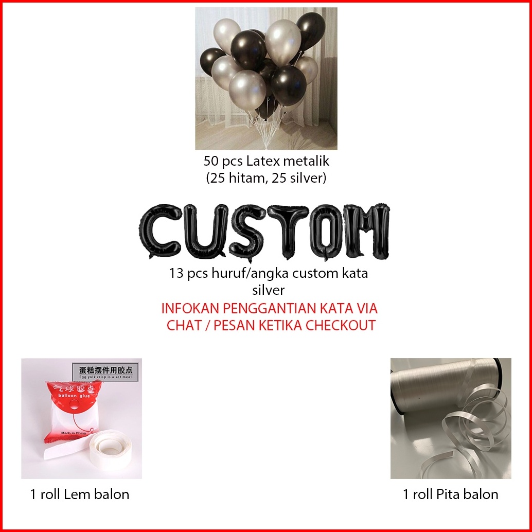 Paket Birthday Set Simple Black Silver Dekorasi Backdrop Ulangtahun