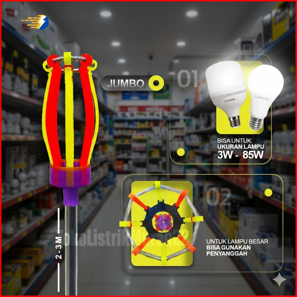 Stik Lampu Tongkat Lampu Satu Set Tongkat Dan Kepala Stik Lampu Jumbo 2 Meter 3 Meter