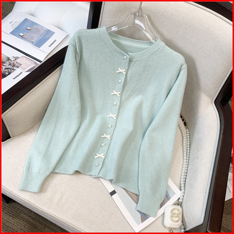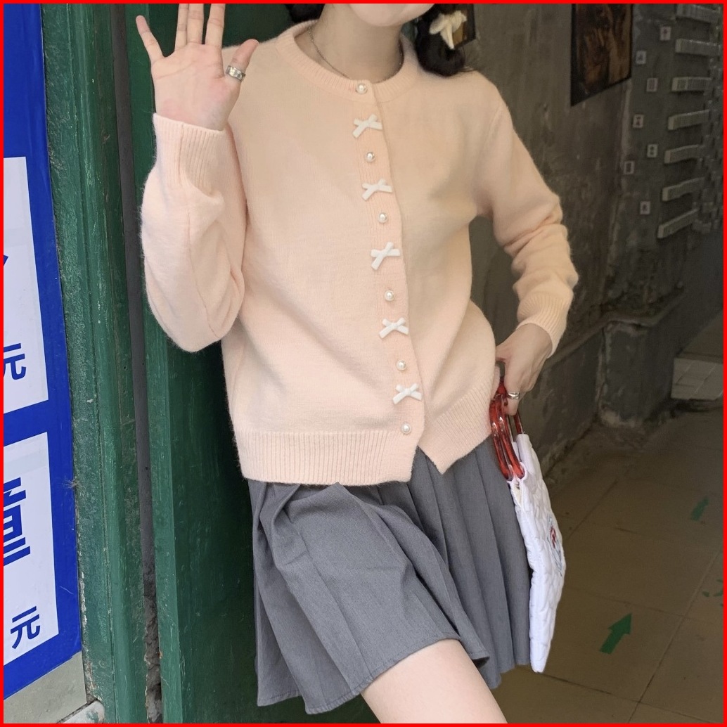 Joveline - Cardigan Simple Kombinasi Kancing Pita Manik-manik Aao3