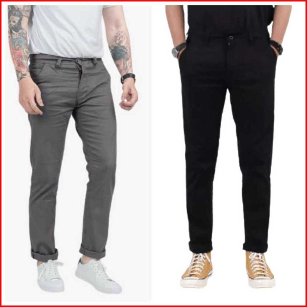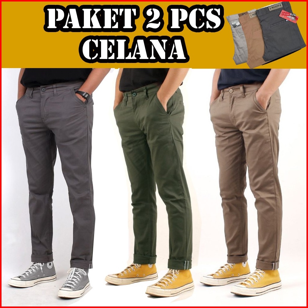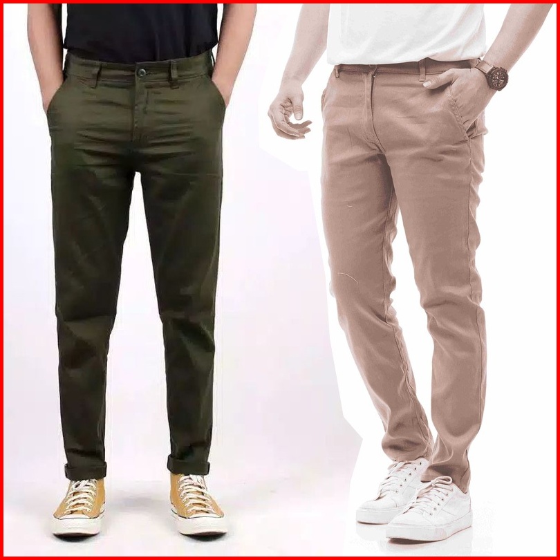 Promo 2pcs 90ribu Celana Chino Panjang Slim Fit Bahan Combed Melar Pria Dewasa
