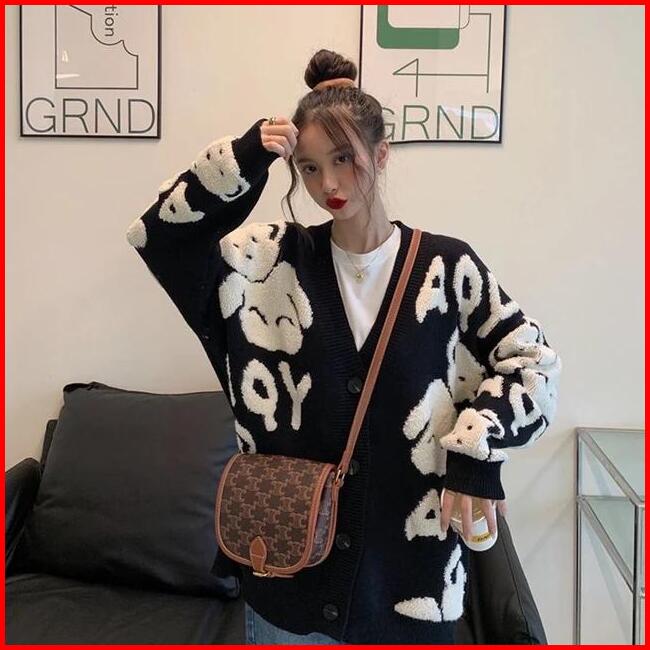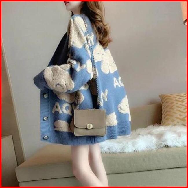 Falen Fuzzy Cardy - Aqy Bear Outer - Korean Style Sweatshirt Kardigan