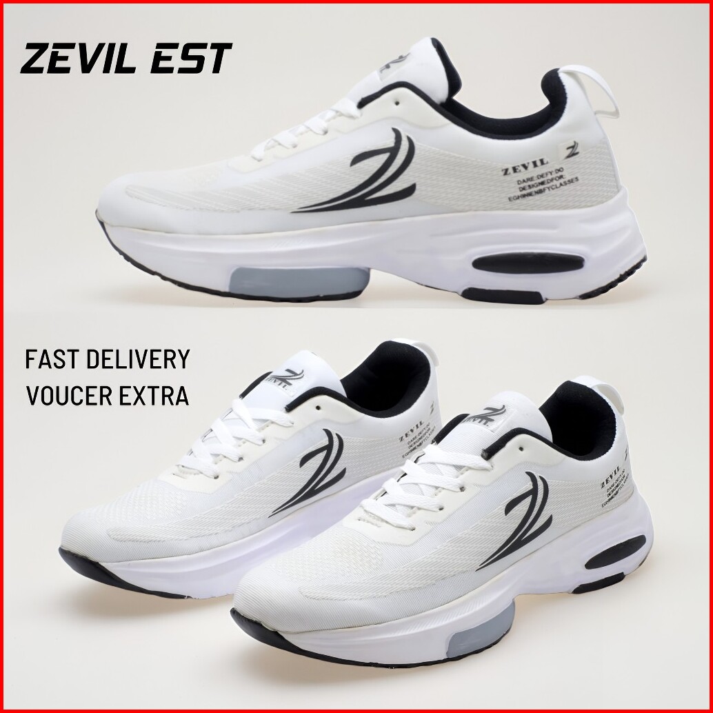 Sepatu Running Olahraga Zevil Est Putih Hitam - Sepatu Lari Sport Outdoor Ringan Dan Nyaman