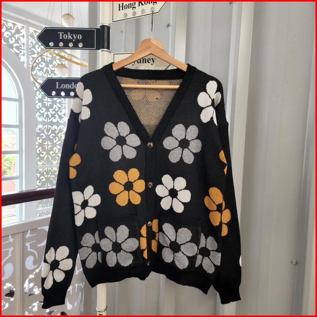 Kardigan Rajut Wanita - Collufull Flower Knite Premium - Korean Cardy