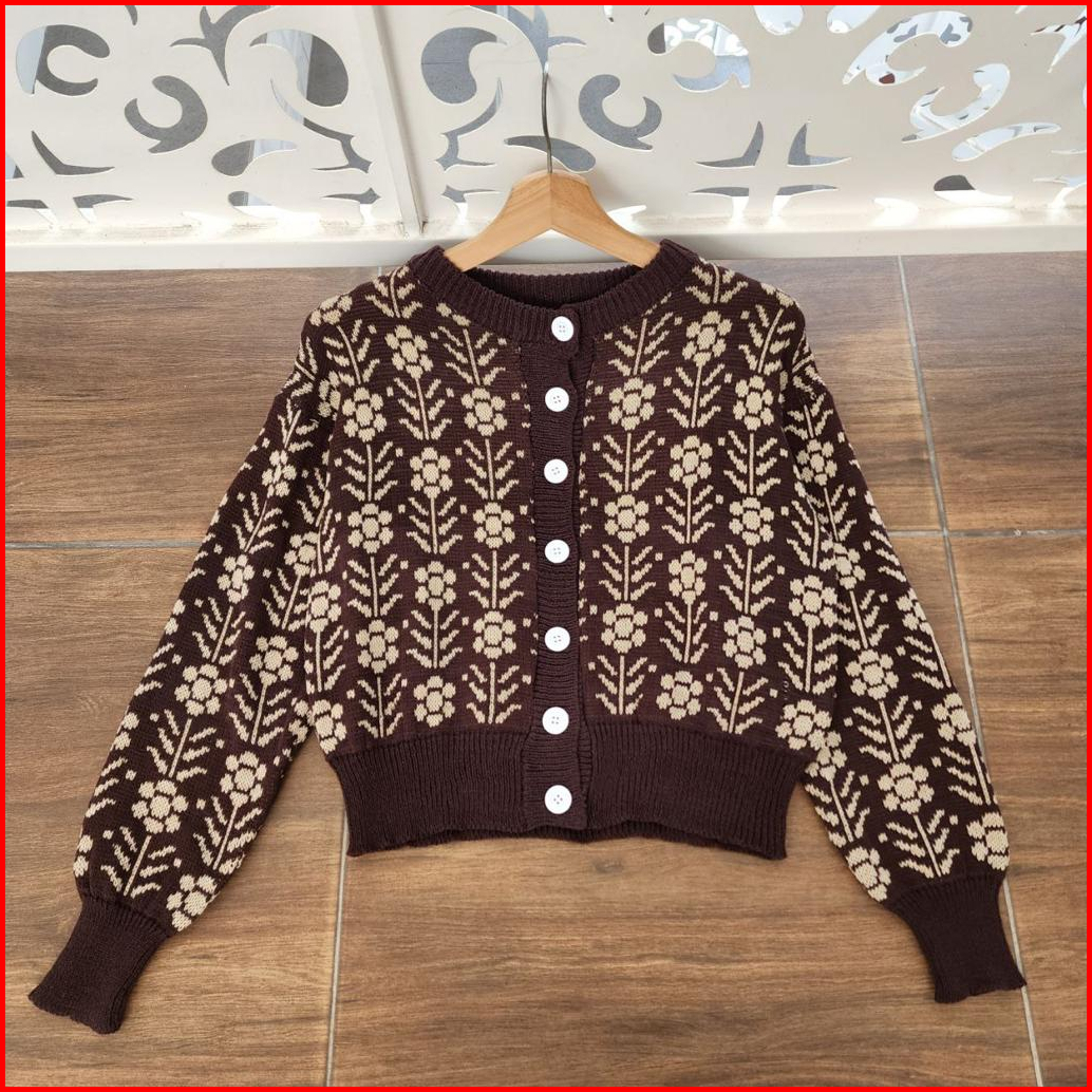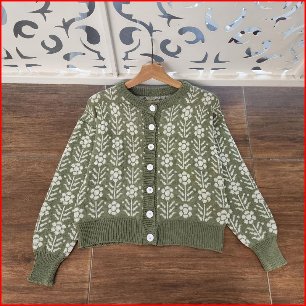 Kardigan Rajut Wanita Gaya Korean Style - Leaf Flower Outer - Rajut Tebal Dan Lembut