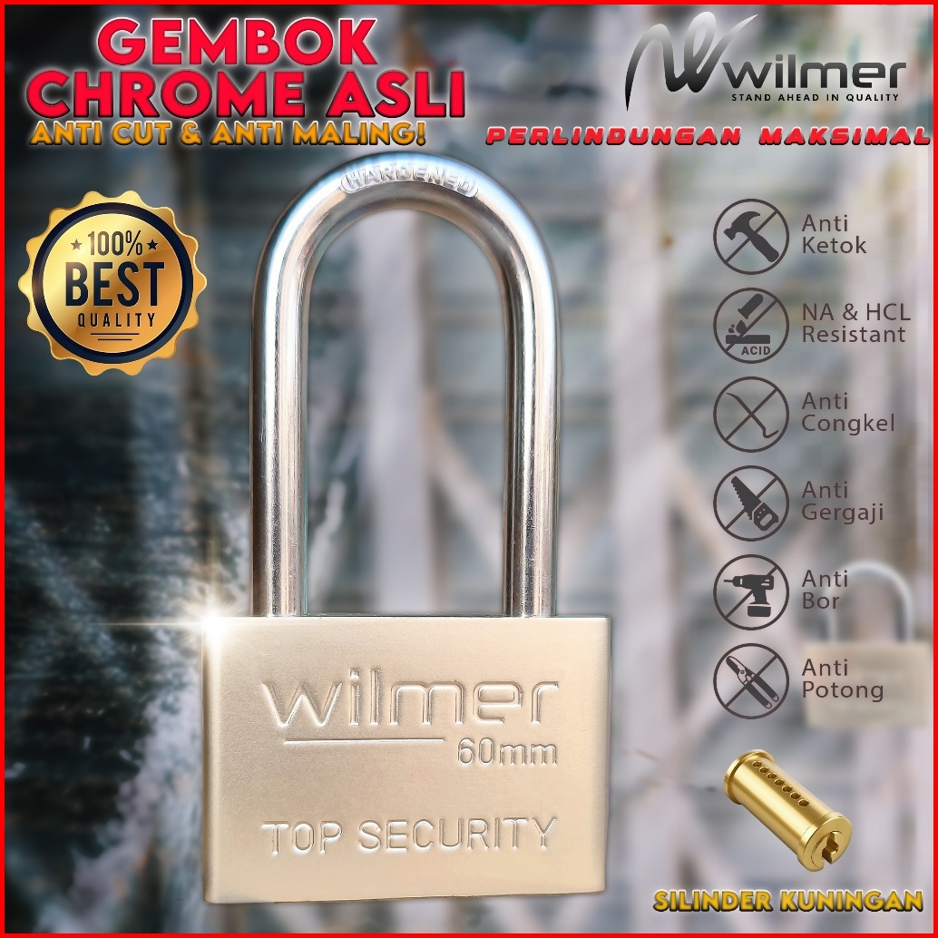 Gembok Chrome Asli Super Kuat Anti Maling Tahan Karat Bahan Tebal Tahan Gergaji Anti Macet