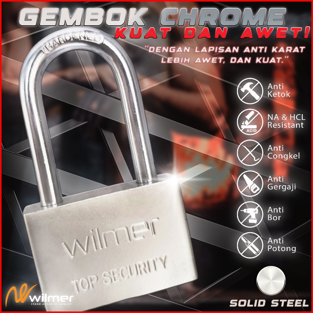 Gembok Chrome Asli Super Kuat Anti Maling Tahan Karat Bahan Tebal Tahan Gergaji Anti Macet