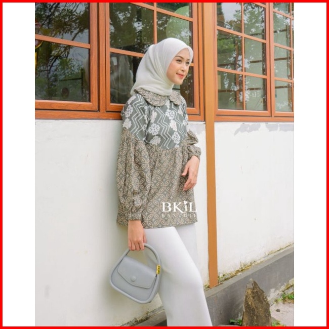 Blus Batik Wanita Modern Busui Friendly Rumi Kawung Atasan Kerja M-l-xl-xxl