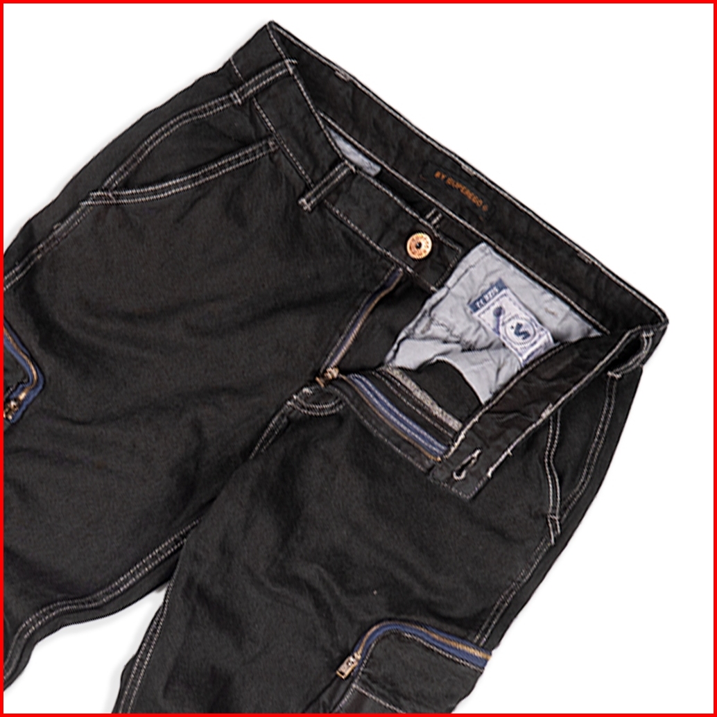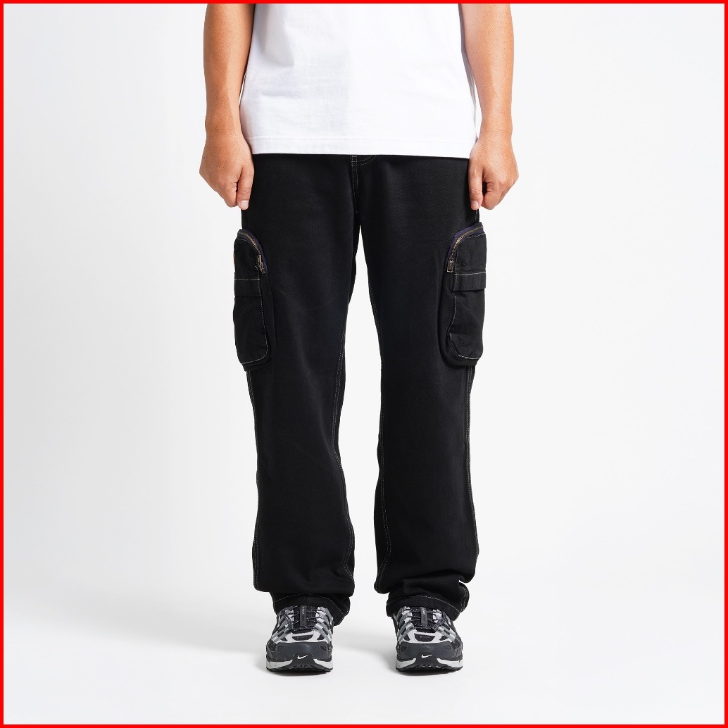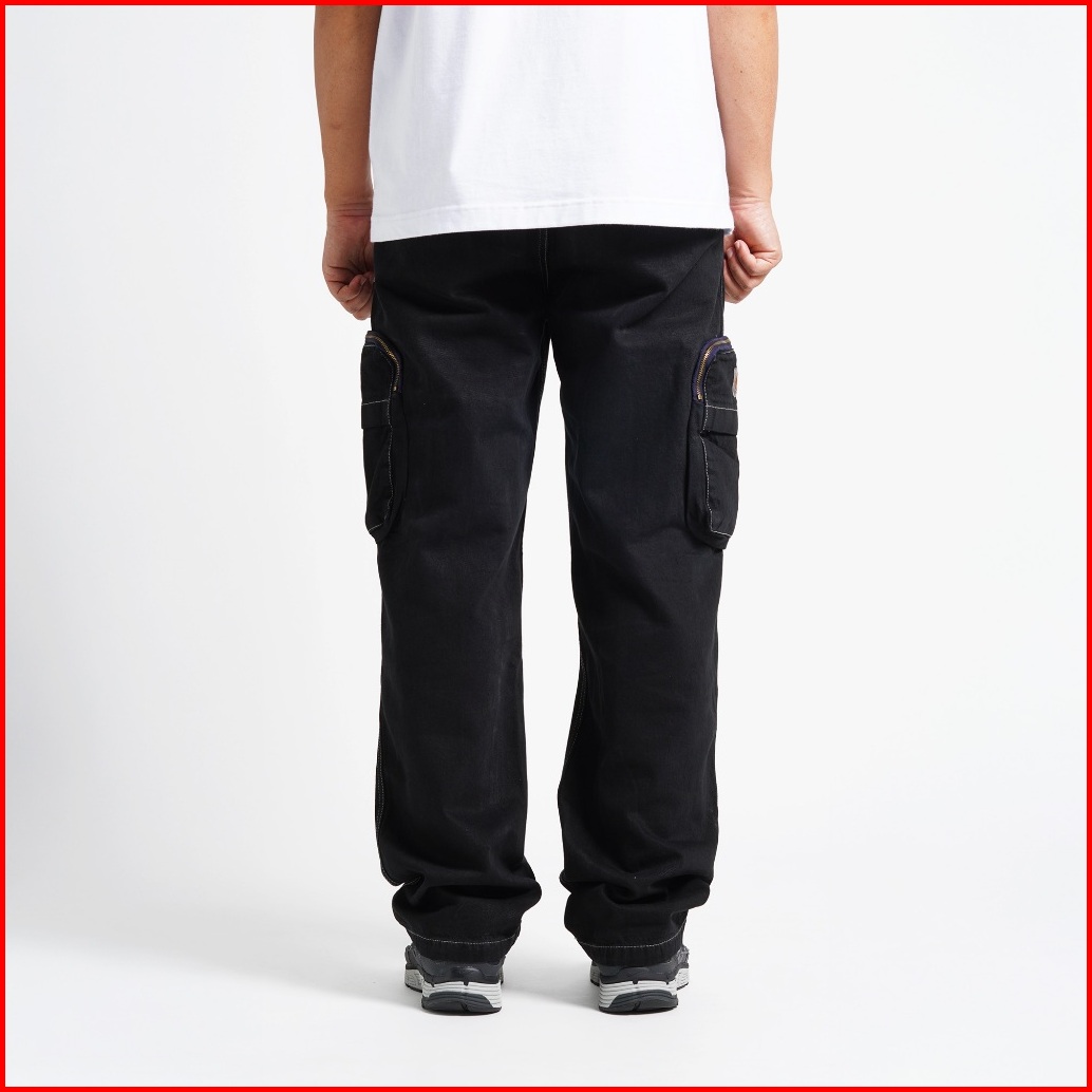 Superego Celana Cargo Pria Size 28-38 Loose Fit Long Pants Denim Zipper Solid Black Cdz01f