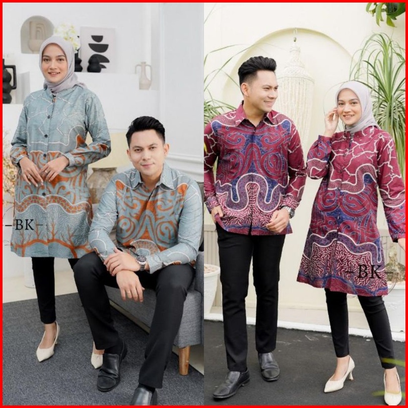 Batik Couple Modern Kancing Depan Akar Dayak Atasan Kerja M-l-xl-xxl-3l-4l