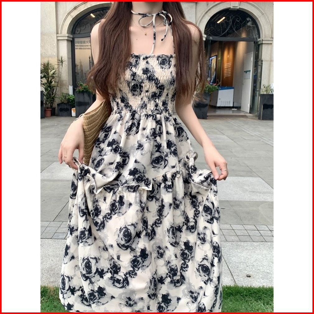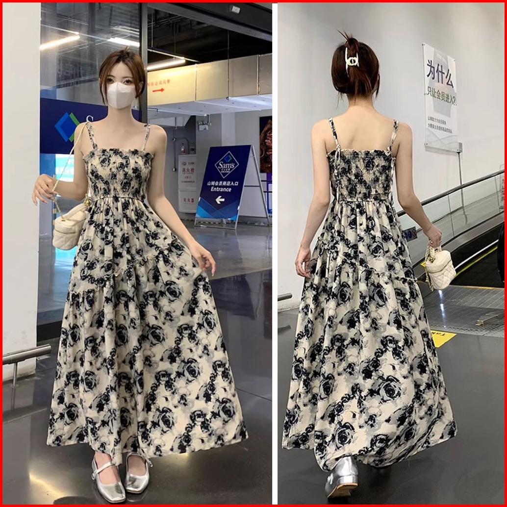 Keygirl Dress Long Dress Camisoles Tali Kecil Wanita Korea Dress Mini Tali Pundak Gaun Wanita Santai Gaya Liburan Bali