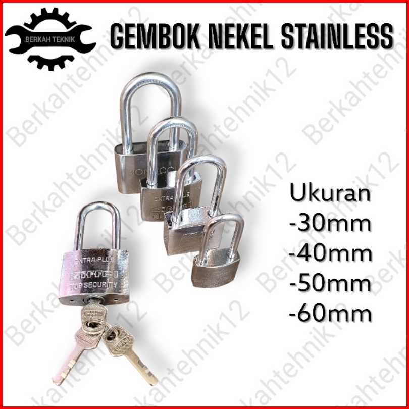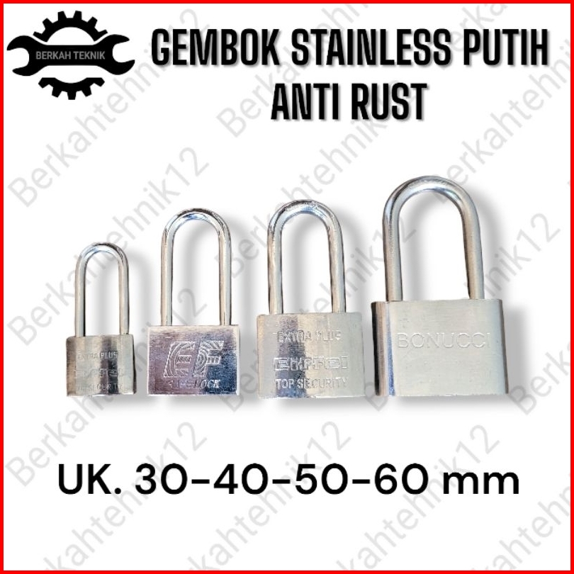 Kunci Gembok Pagar Pintu Stainless Leher Pendek Dan Panjang Anti Maling 30mm 40mm 50mm 60mm