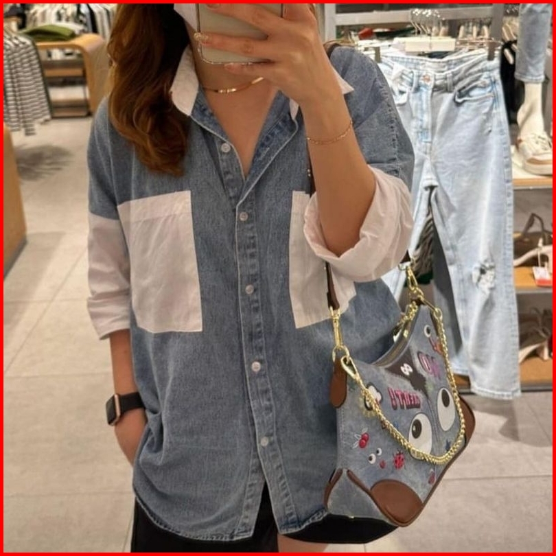 Soft Denim X Cotton Combination Two Pocket Shirt
