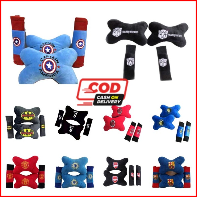 Bantal Mobil 2in1 Set Karakter Cartoon Kartun Set 2in1 Mobil Bantal Karakter Headrest Car