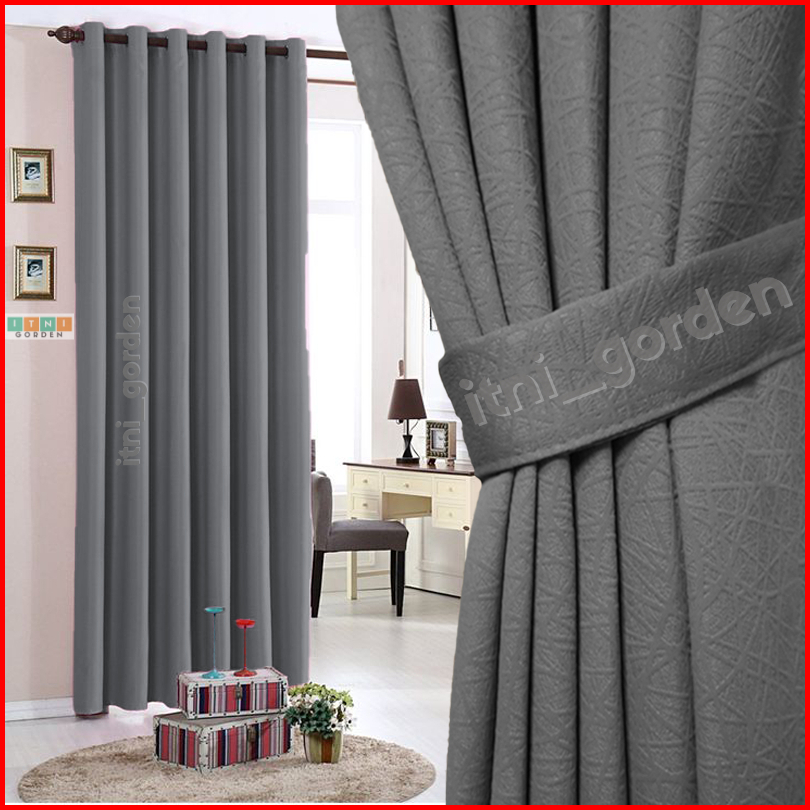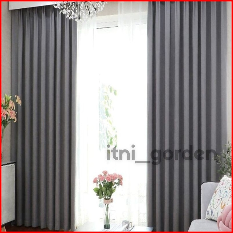 Mtr Gorden Jendela Aesthetic Blackout 6 Gelombang T.150-270cm - Premium Minimalis Polos Abu Tua