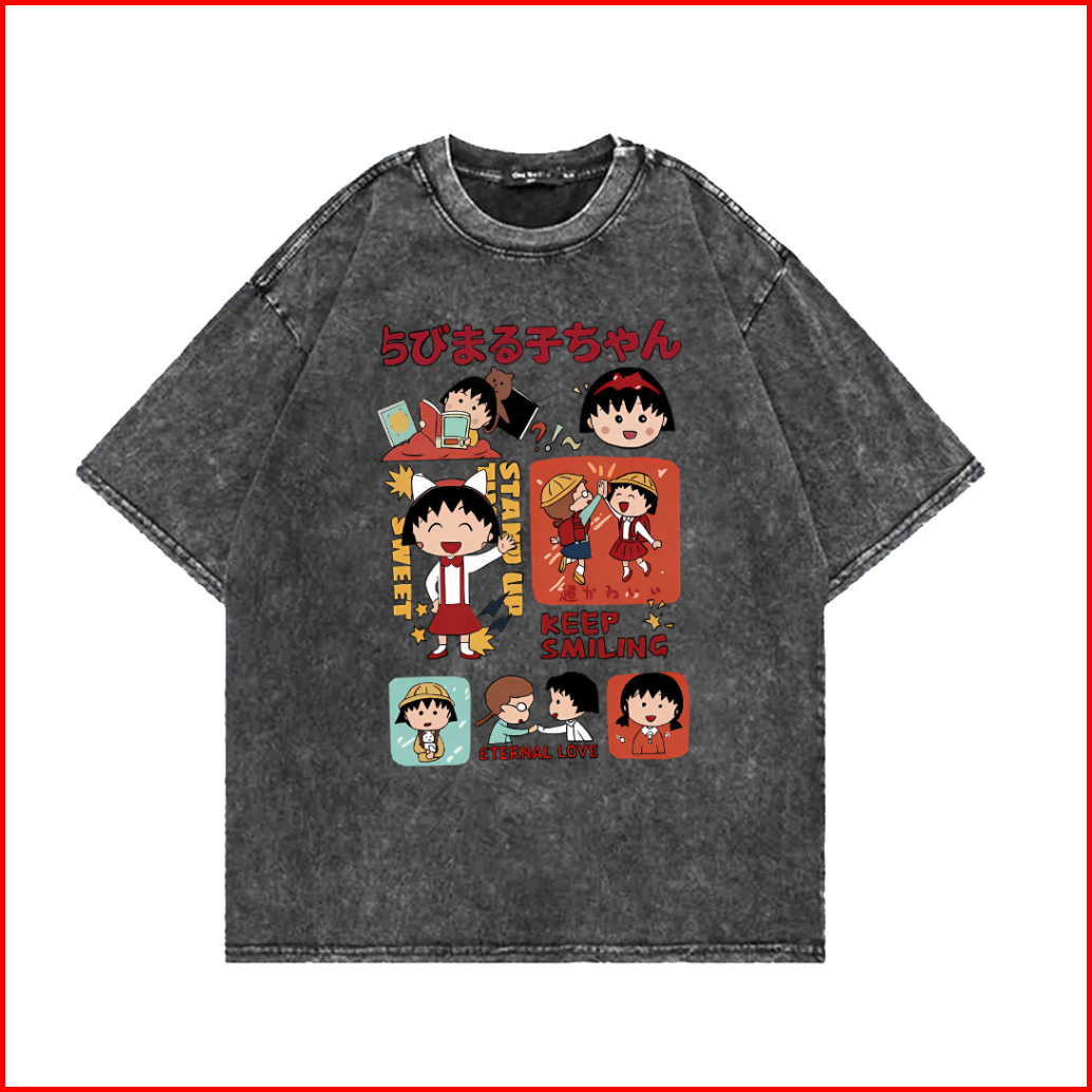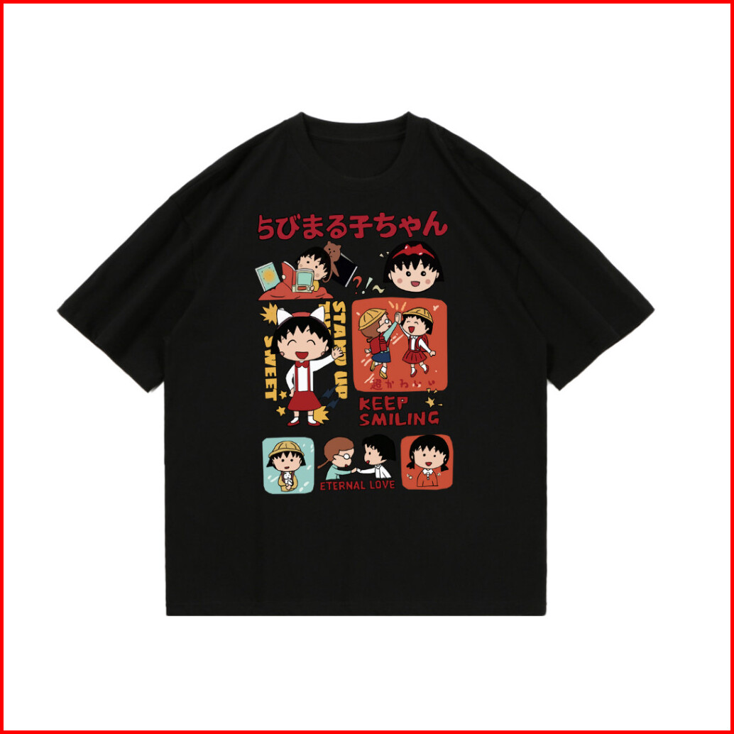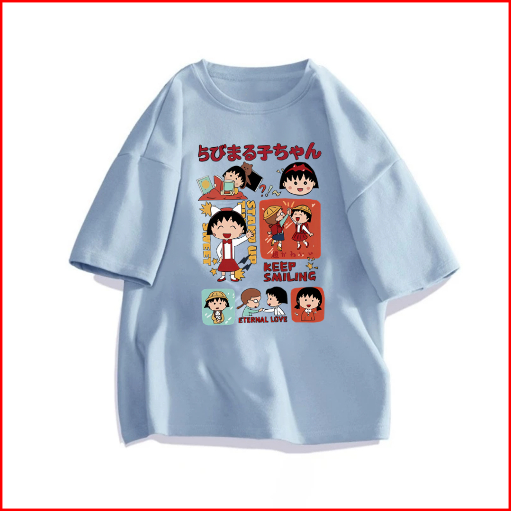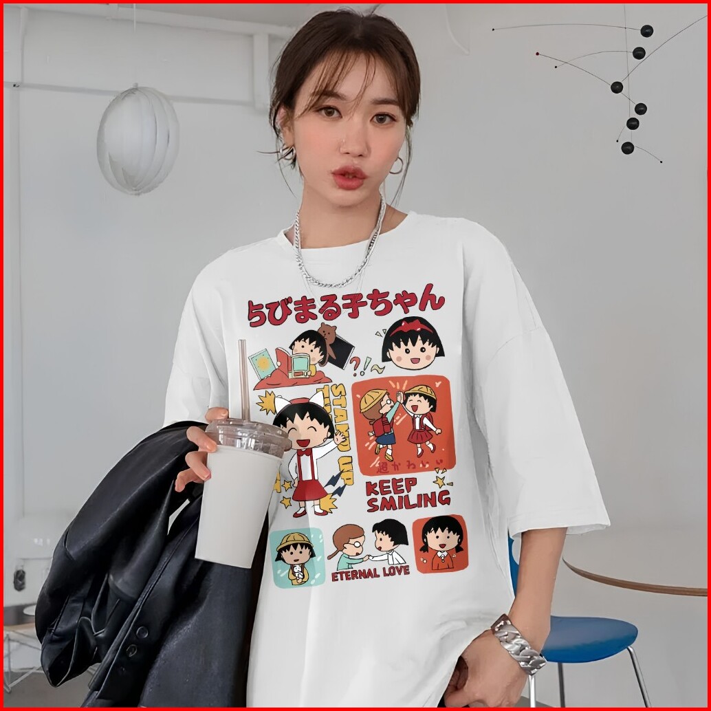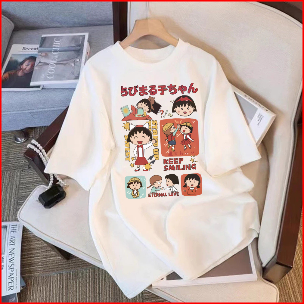 Tshirt Lengan Pendek Kaos Oversize Cartoon Chibi Maruko Korean Style Bahan 100 Cotton