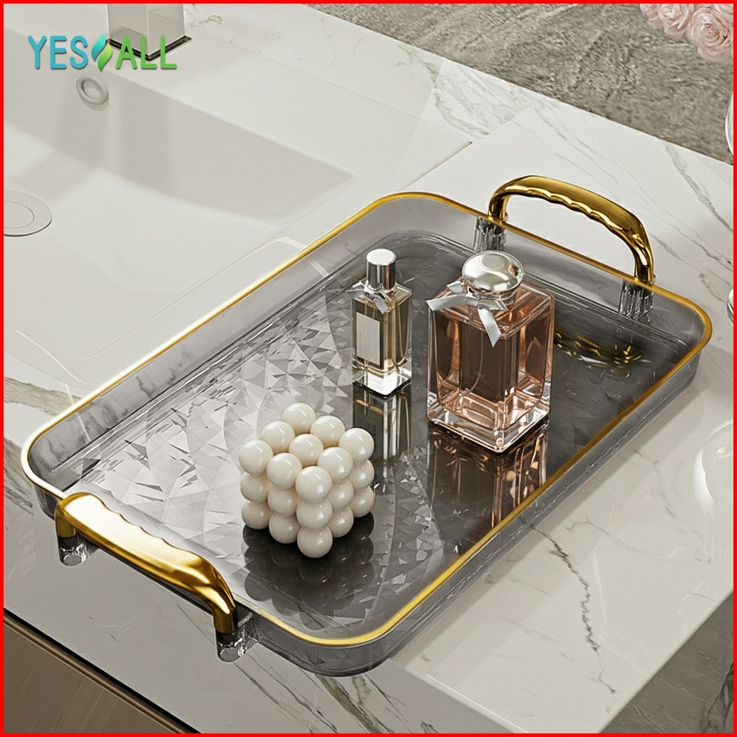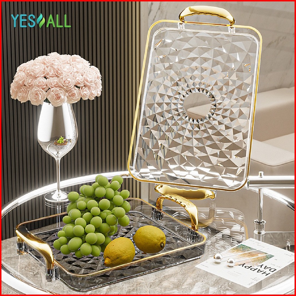 Yesall Nampan Aesthetic Mewah Motif Berlian Dengan Pegangan Tray Plastik Elegan Untuk Snack Buah Minuman