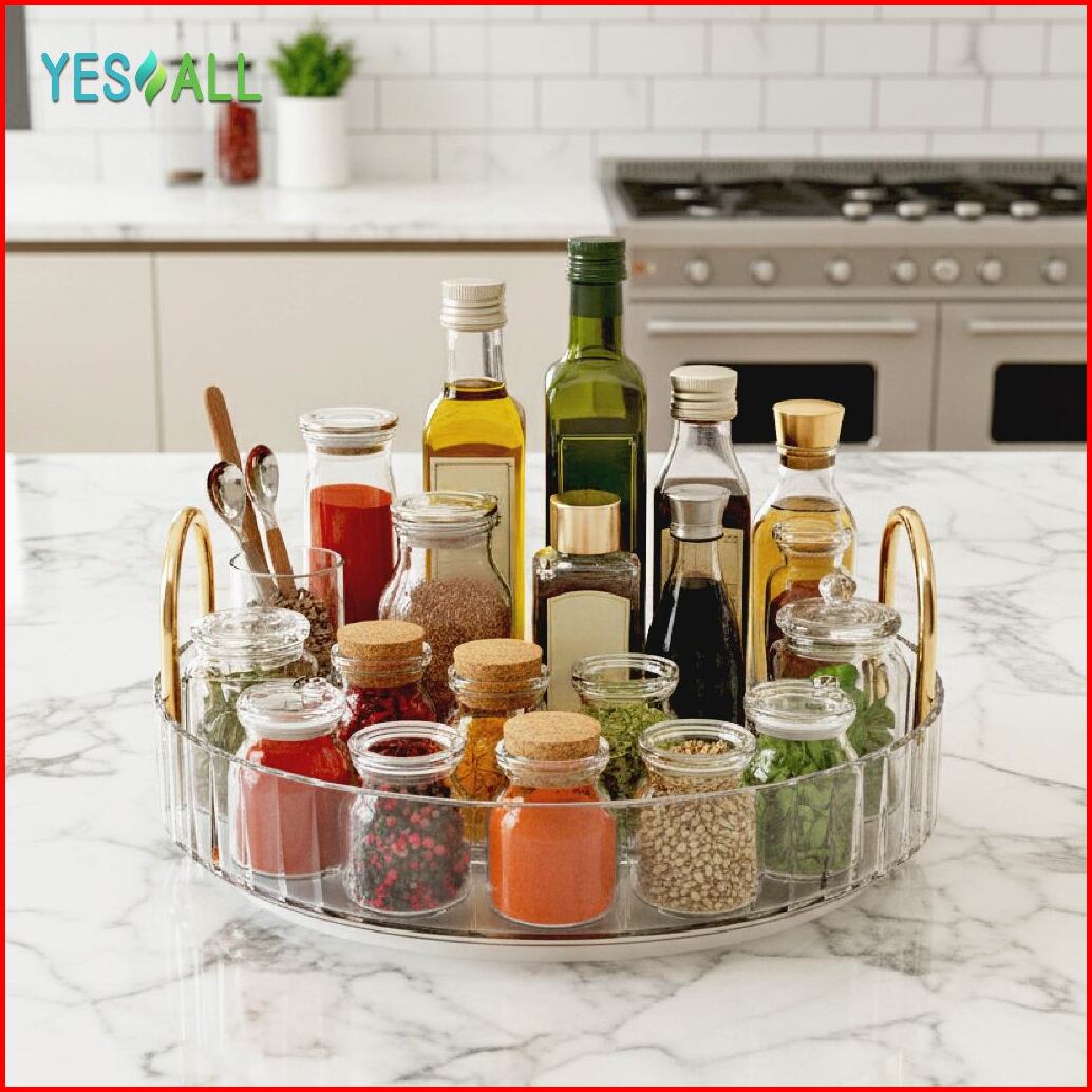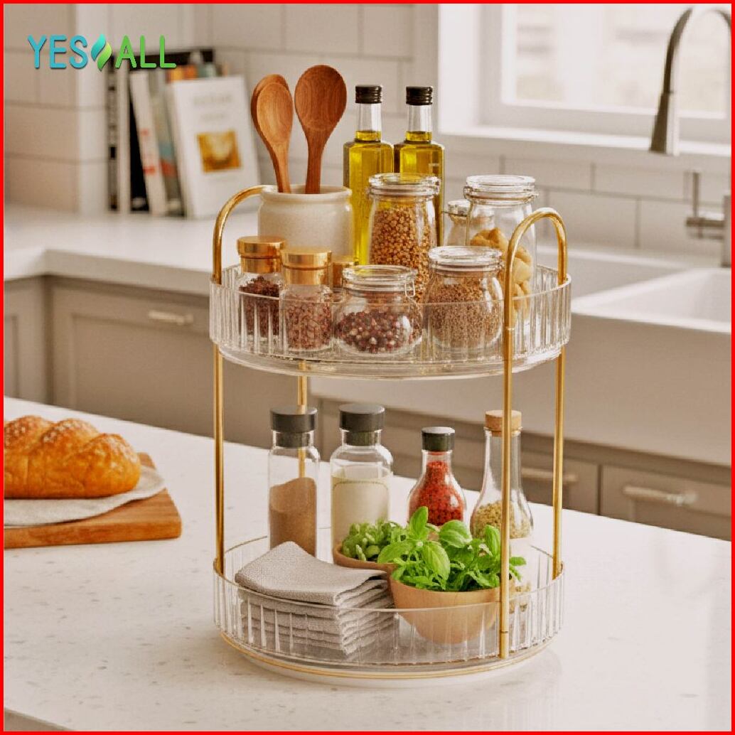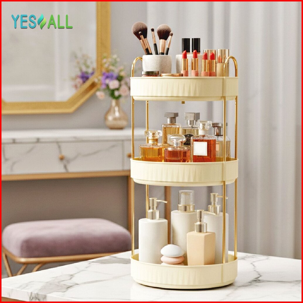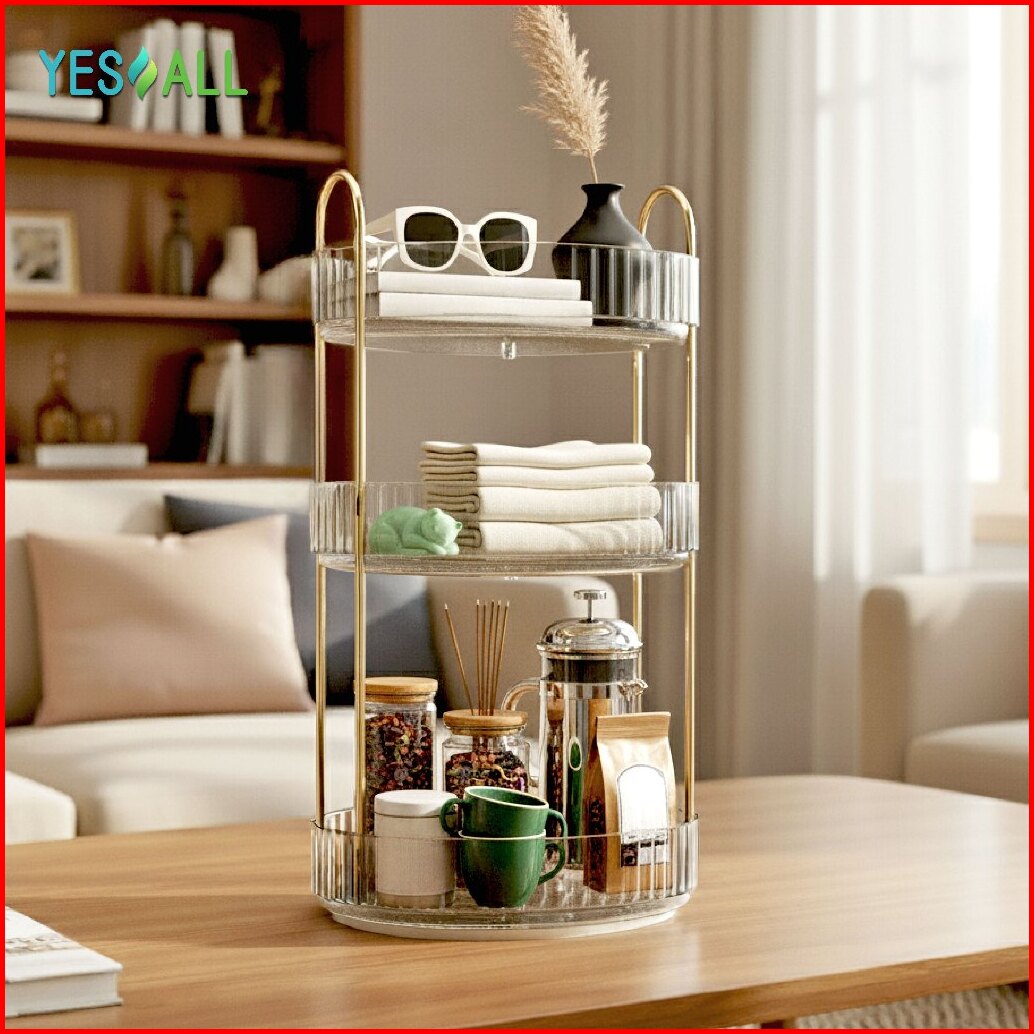 Yesall Rak Kosmetik Putar 1 2 3 Susun Rak Skincare Aesthetic Pet Transparan Serbaguna Dapur Meja Rias