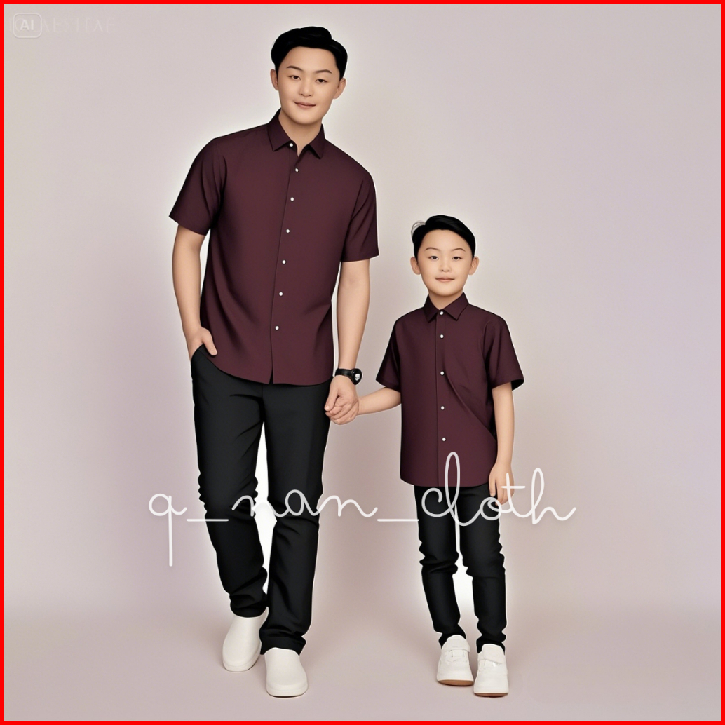 Burgundy Kemeja Couple Ayah Dan Anak Bahan Katun Ukuran Sampai Jumbo