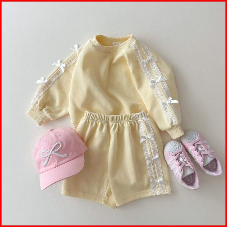 Setelan Celana Pendek Anak Model Renda Pita Cantik Terbaru Setelan Anak Perempuan Umur 1-8 Tahun Baju Anak Trendy