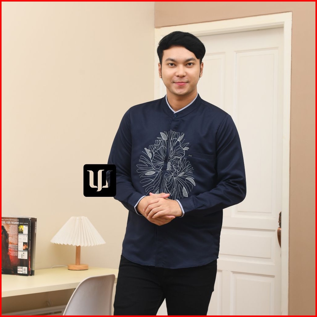 Koko Kurta Couple Ayah Anak Khalfan Navy Biru Tua Lengan Panjang Pendek Bordir Kombinasi Katun Toyobo