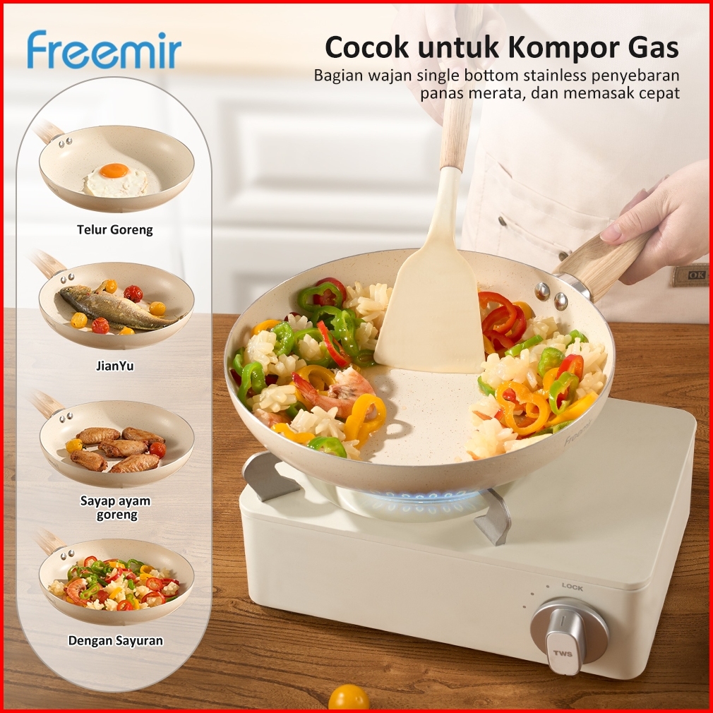 Exclusive Freemir Teflon Wokpan Granite Beige 16 20 24cm Anti Lengket Multifungsi Rekomendasi