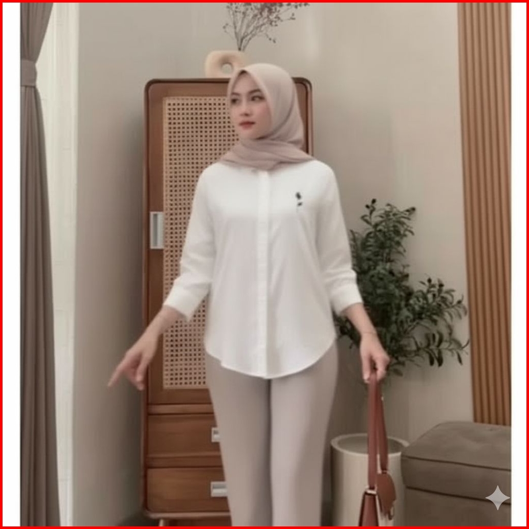 Blouse Kemeja Bordir Atasan Wanita Lengan 7 8 Bahan Rayon Twill Adem Dan Lembut
