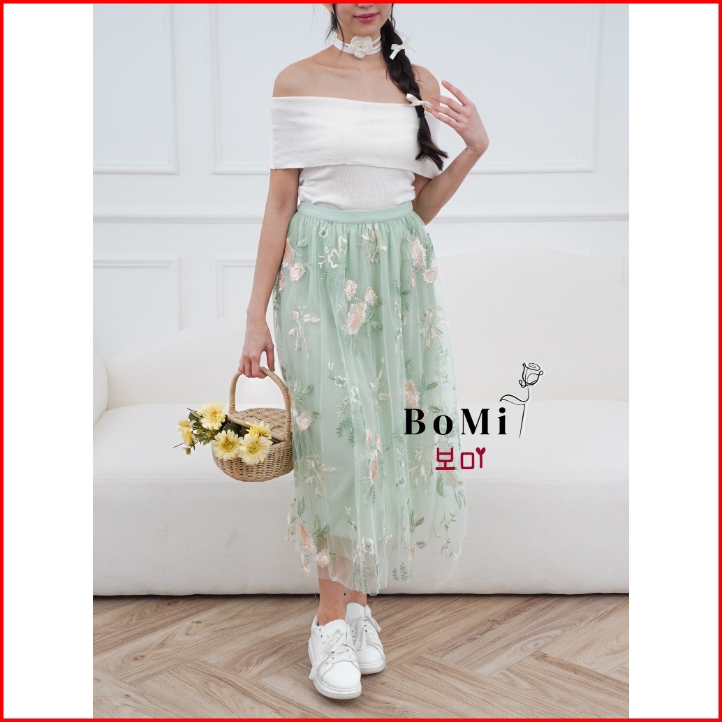 Bomi - Areum Skirt Flower Korean Premium Rok Tutu Tile 3d Motif Timbul Bunga 3 Lapis Dengan Furing