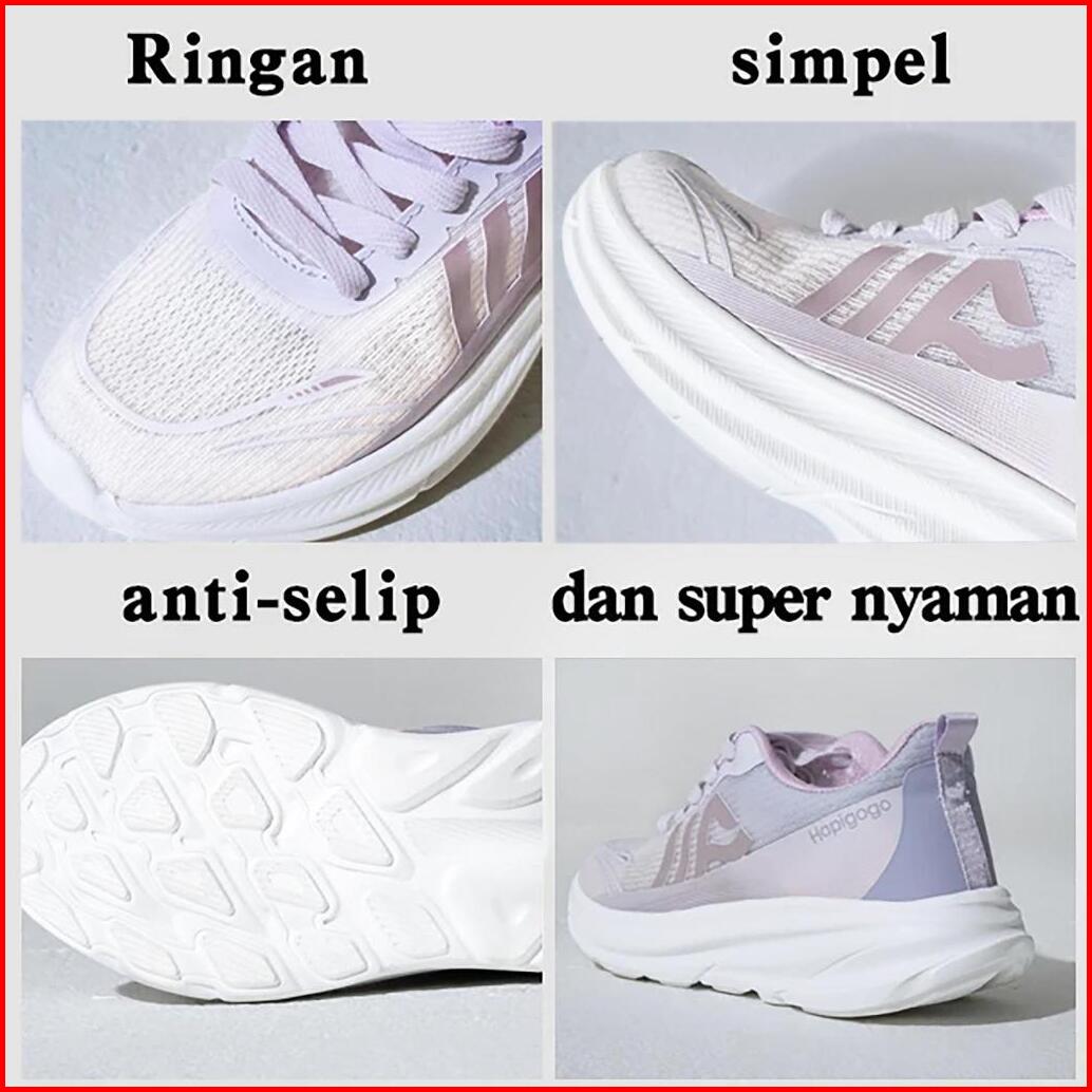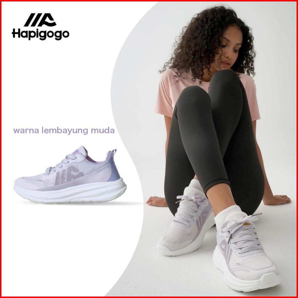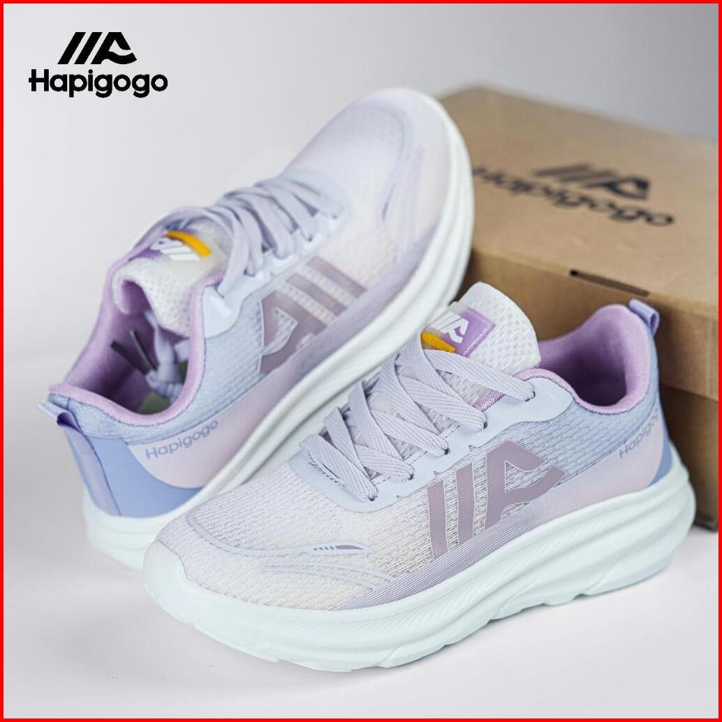 Hapigogo Sepatu Lari Wanita Bertali Lavender Desain Sporty Tinggi Hak 1-3cm
