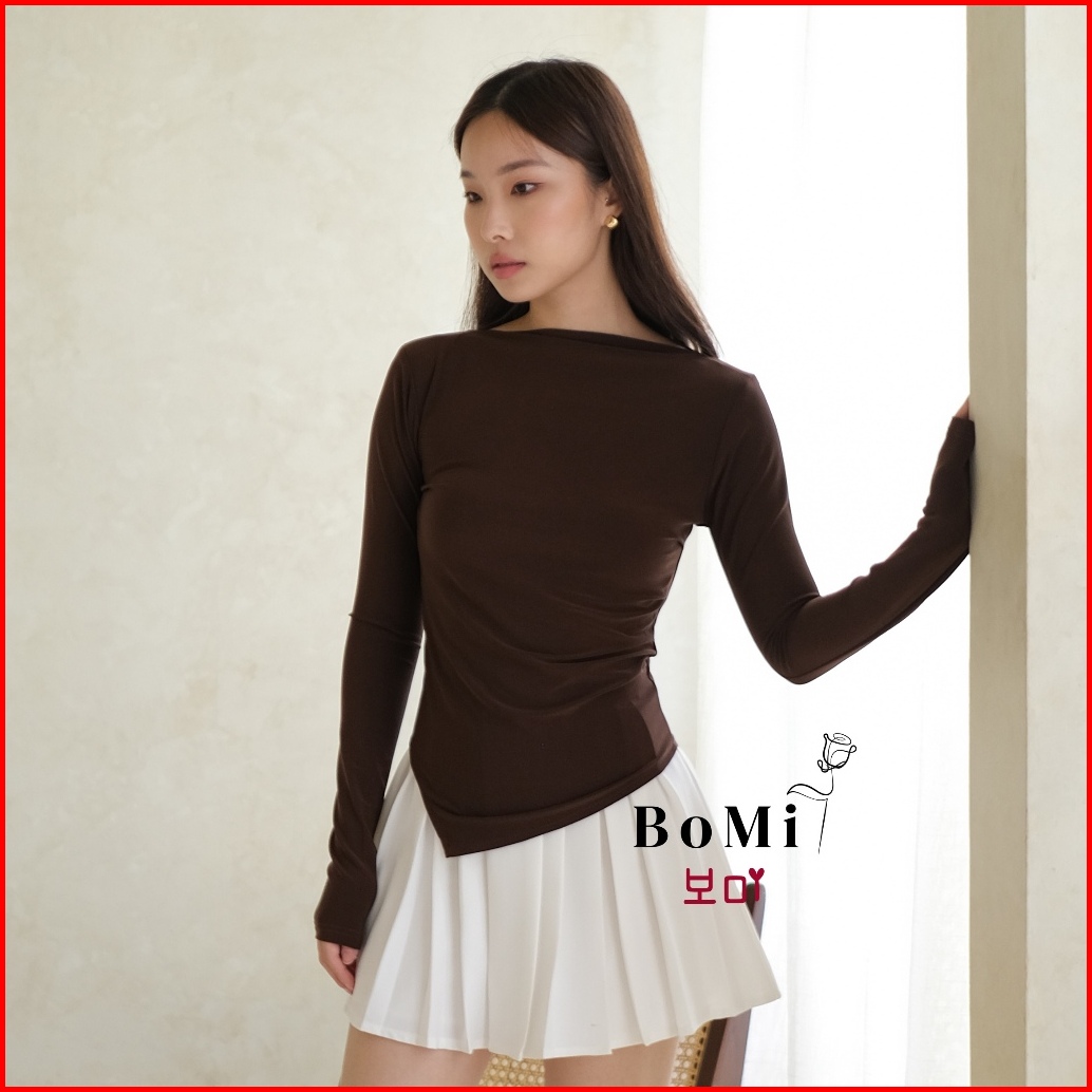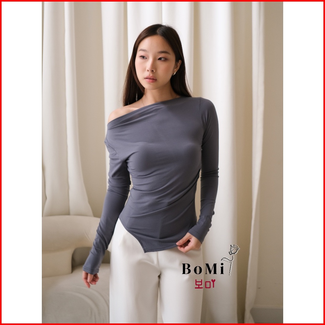 Bomi - Becca Top Atasan Basic Top Wanita Sabrina Longsleeve Lengan Panjang Off Shoulder Stretch Boat Neck