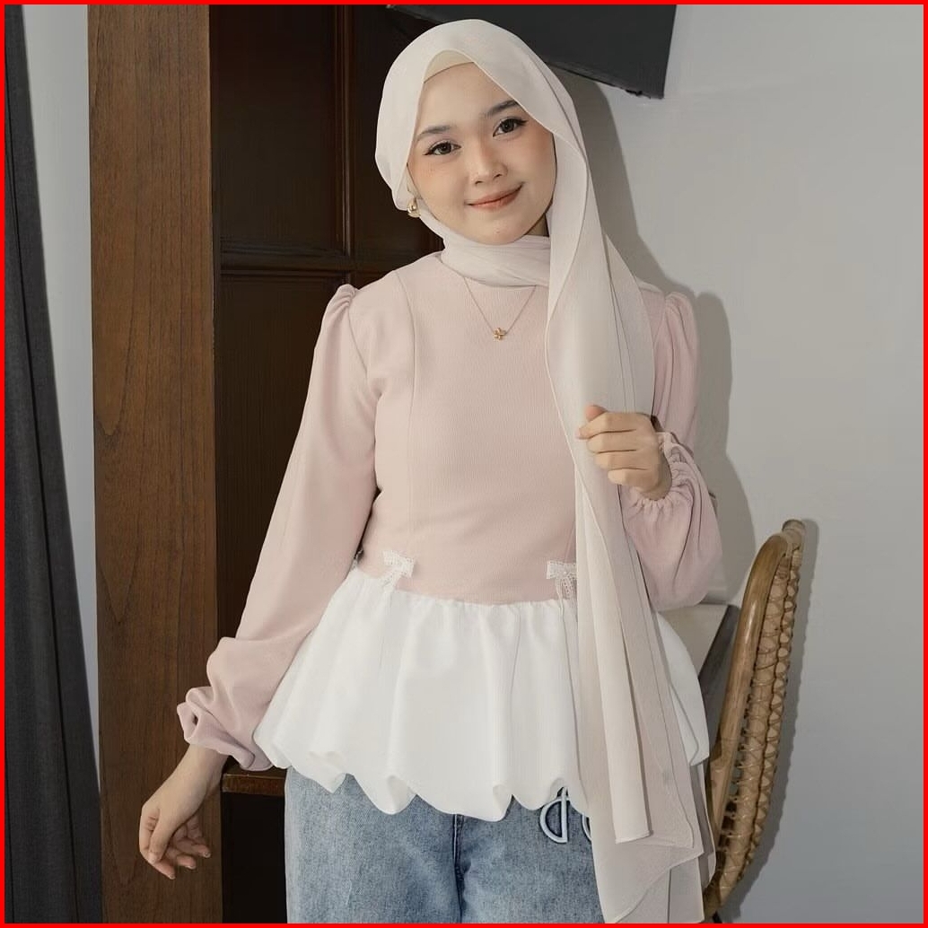 Dhiva Blouse Ballon Knit Top Puffy Baju Atasan Wanita Terbaru