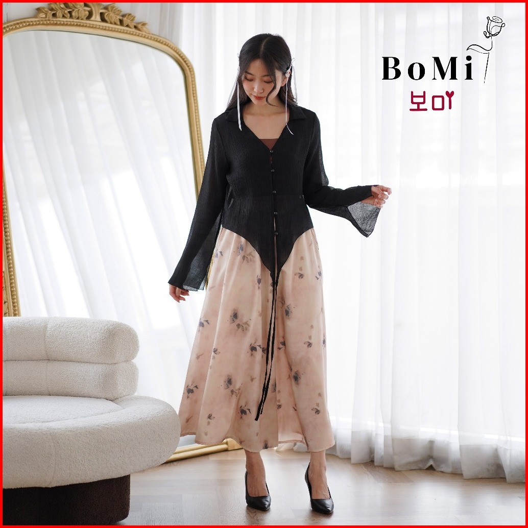 Bomi - Junhee One Set Korean Kemeja Modis Dengan Kulot Panjang Highwaist Adem Lembut