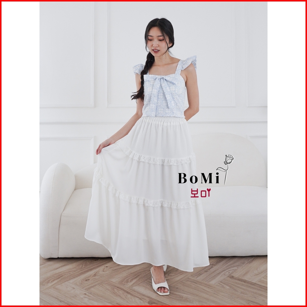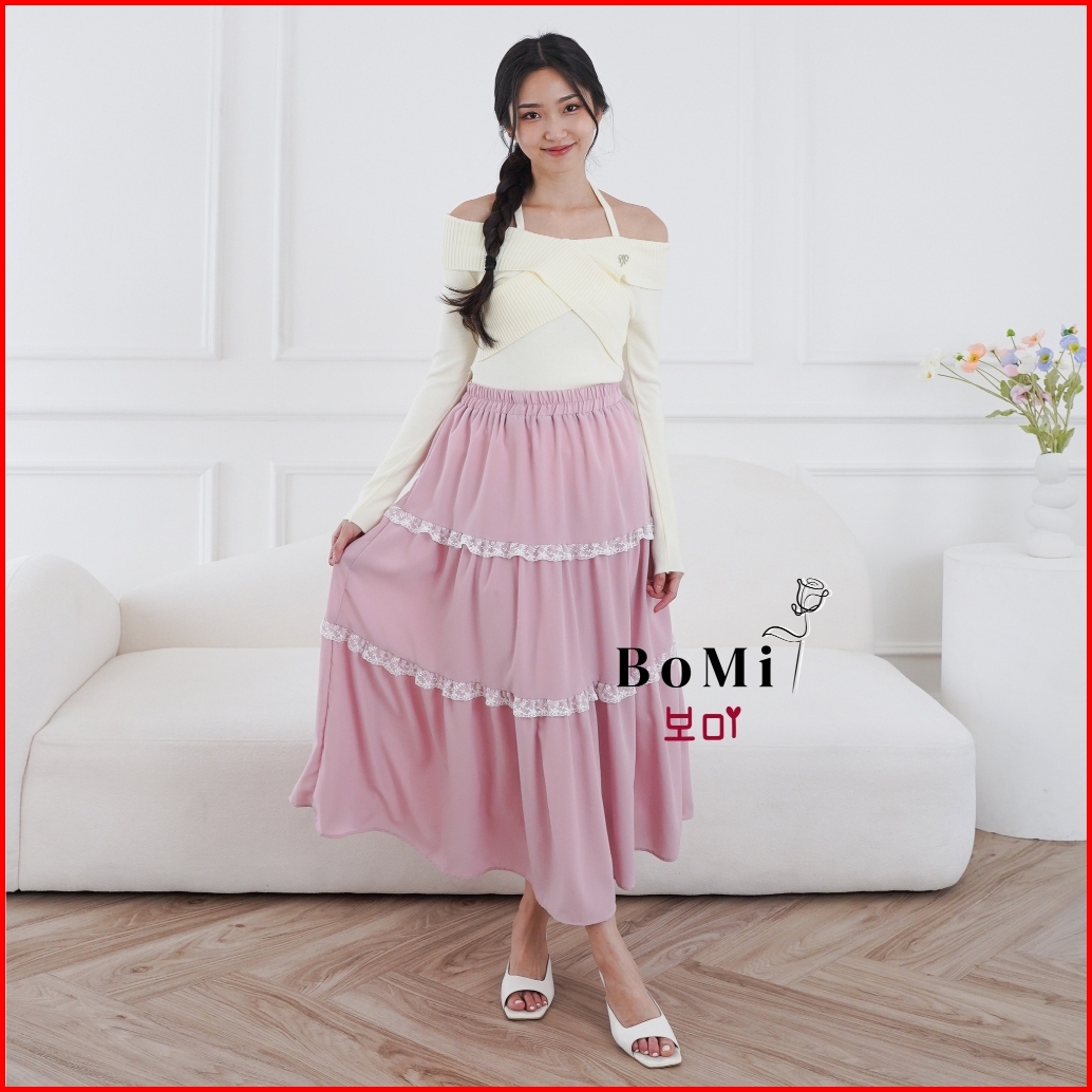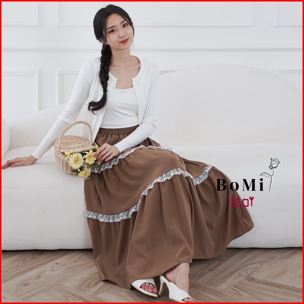 Bomi - Iris Skirt Maxi Korean Snow Sheer Rok Renda Wanita Tingkat Susun Premium Wanita Dengan Furing