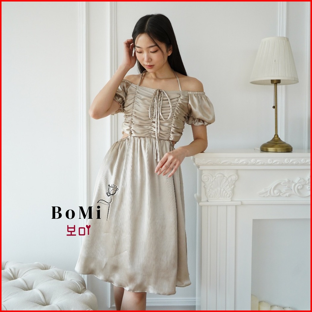 Bomi - Kate Dress Korea Wanita Multiway Bisa Dipakai Banyak Model Casual Party Kondangan Premium Dengan Furing Glossy El