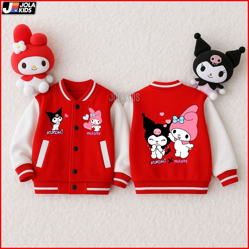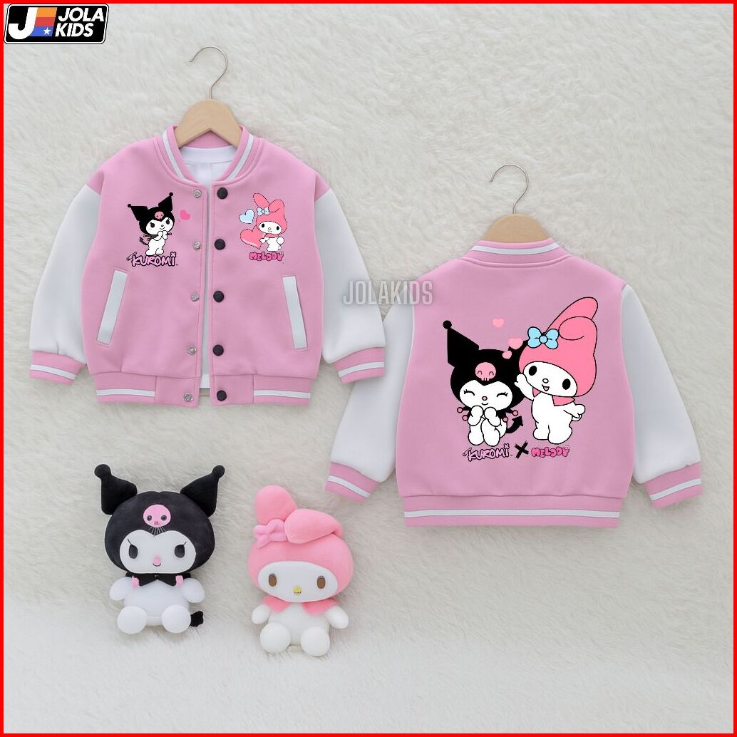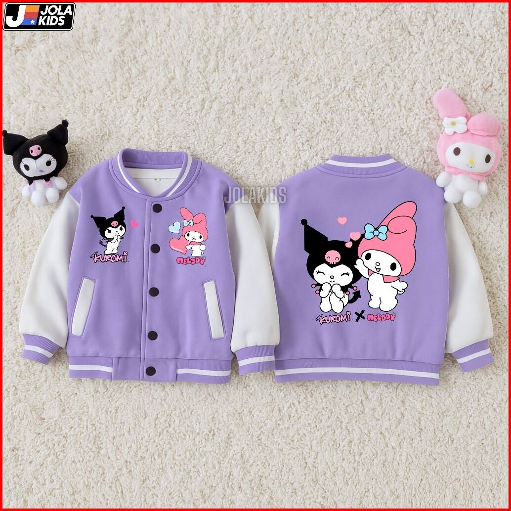 Jaket Hoodie Anak Perempuan Kuromi X Melody Umur 2-12 Tahun Jaket Baseball Anak Laki Laki Perempuan