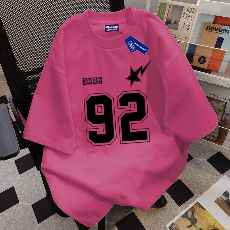 Quiss Merek yang trendi No. 92 Jersey Gaya Amerika Angin olahraga Lengan pendek baju atasan wanita terbaru kaos pria oversize couple t shirt vintage / Baju Kaos Pria Distro Original 100 PERSEN