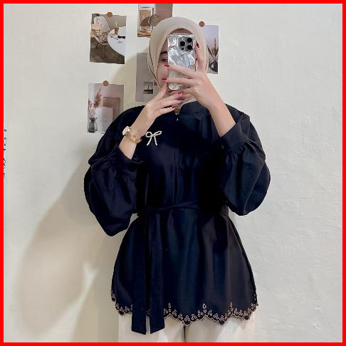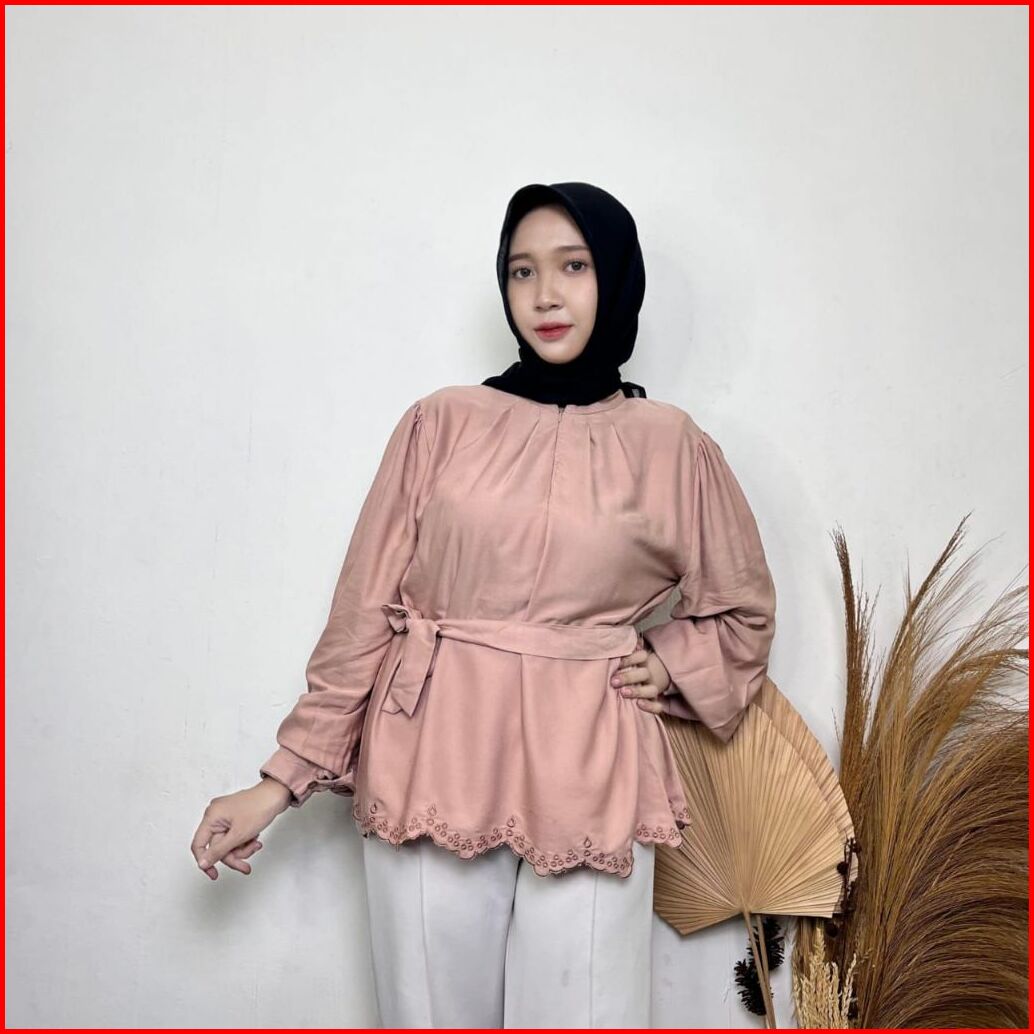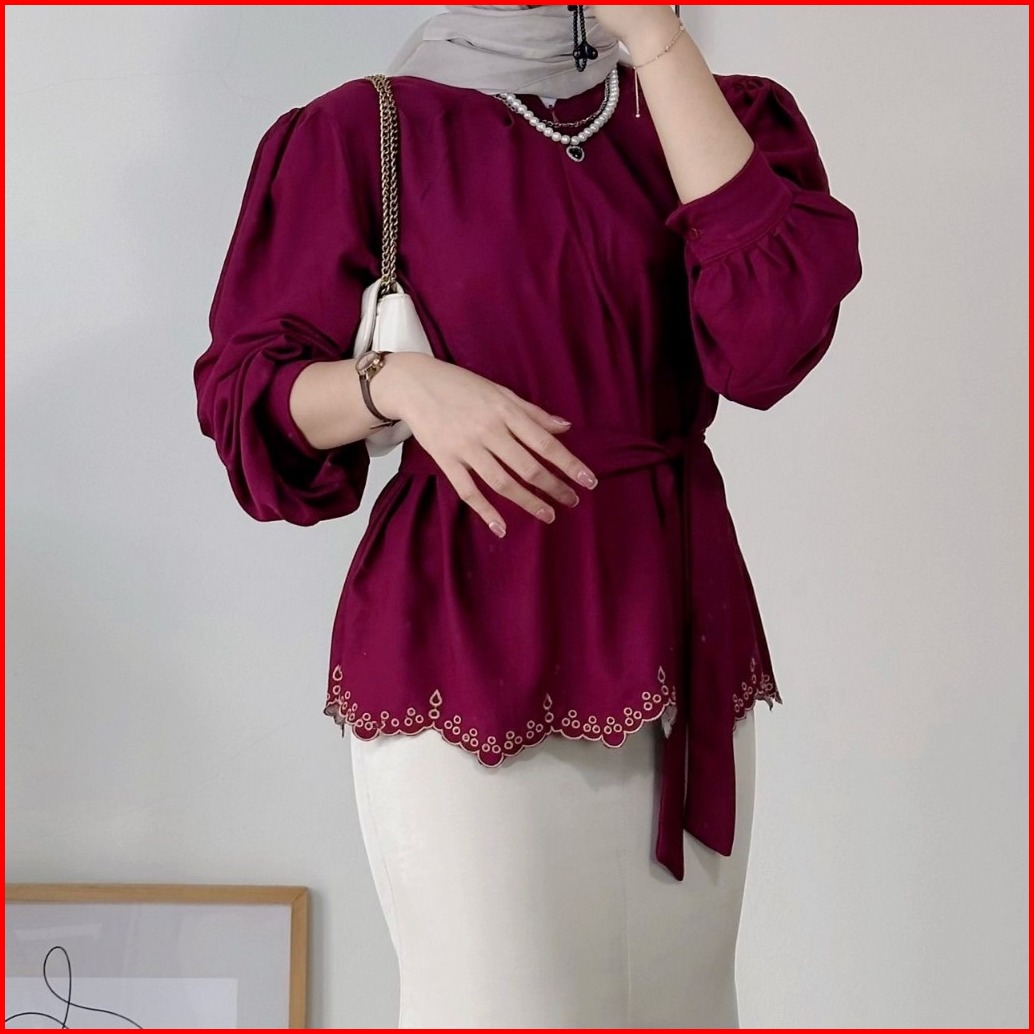 Blouse Puffy Lengan Balon Kerah Shanghai Elegant Free Belt Atasan Stylish Aireen