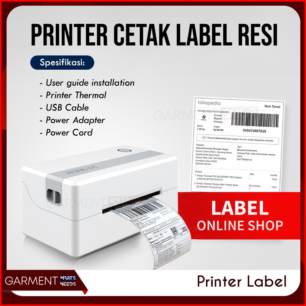 Printer Thermal Label Barcode Pengiriman Usb Bluetooth Cetak Alamat Resi Marketplace Tdl406