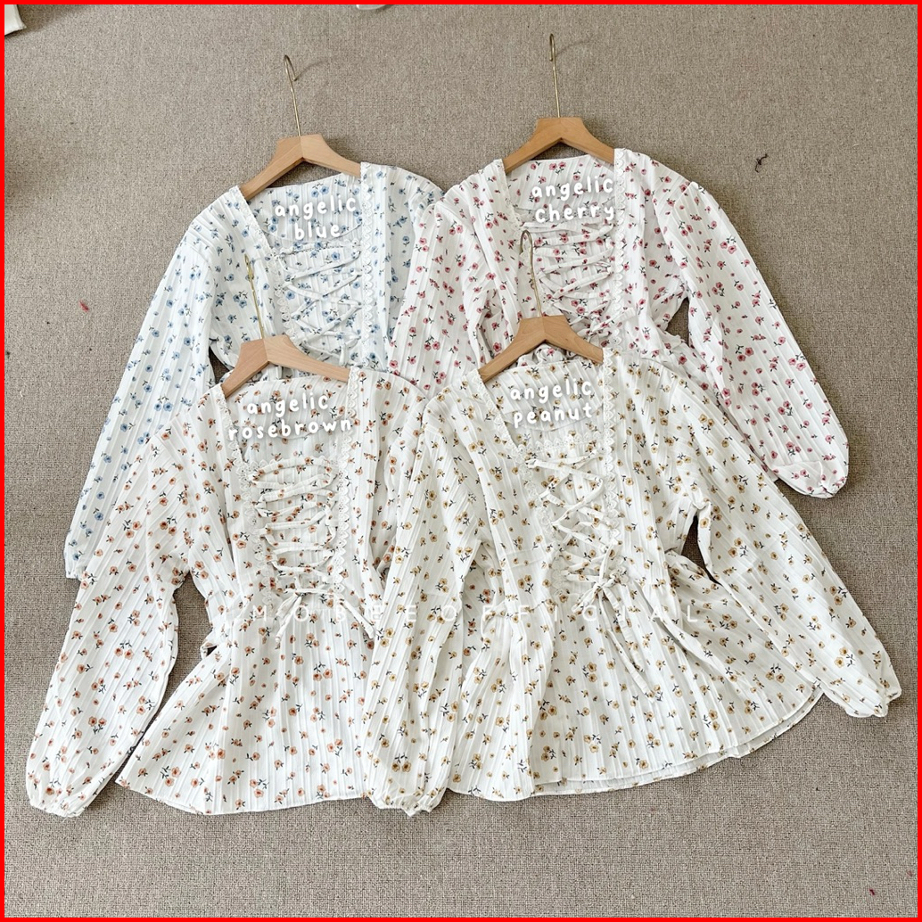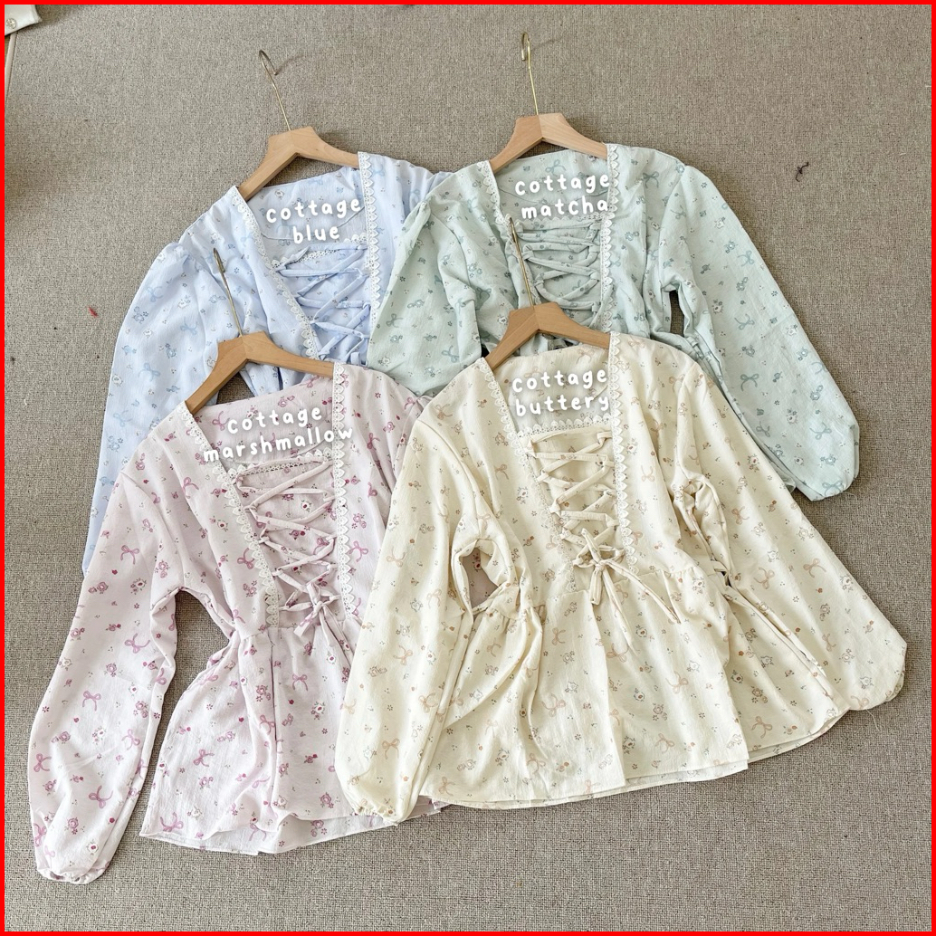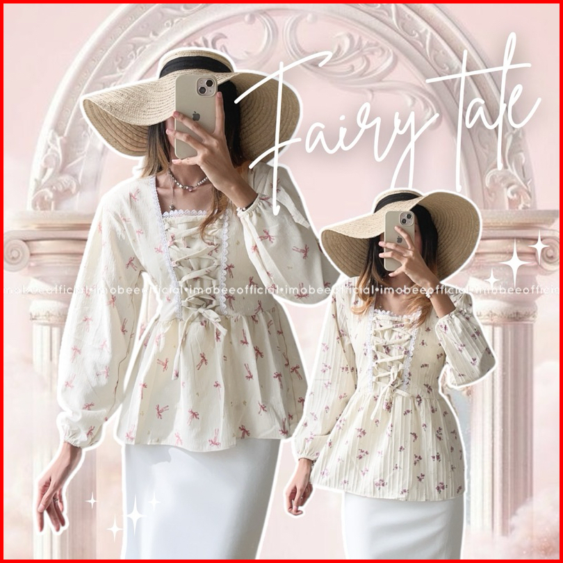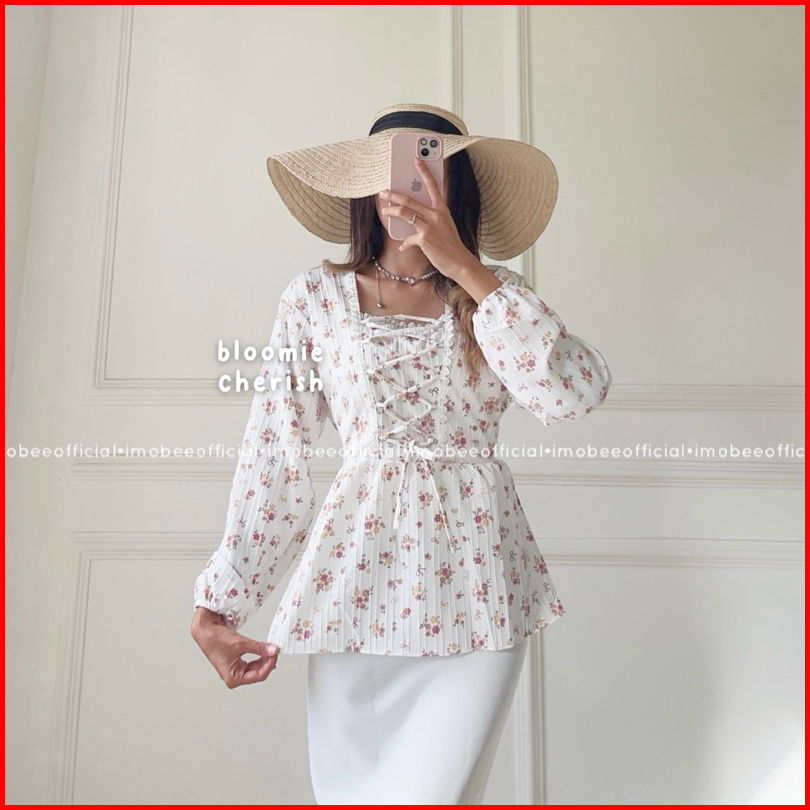 Imobeeofficial Fairy Tale Cottage Blouse Top Atasan Wanita Peplum Shabby Bunga Flower Tali Simpul Korea Aesthetic