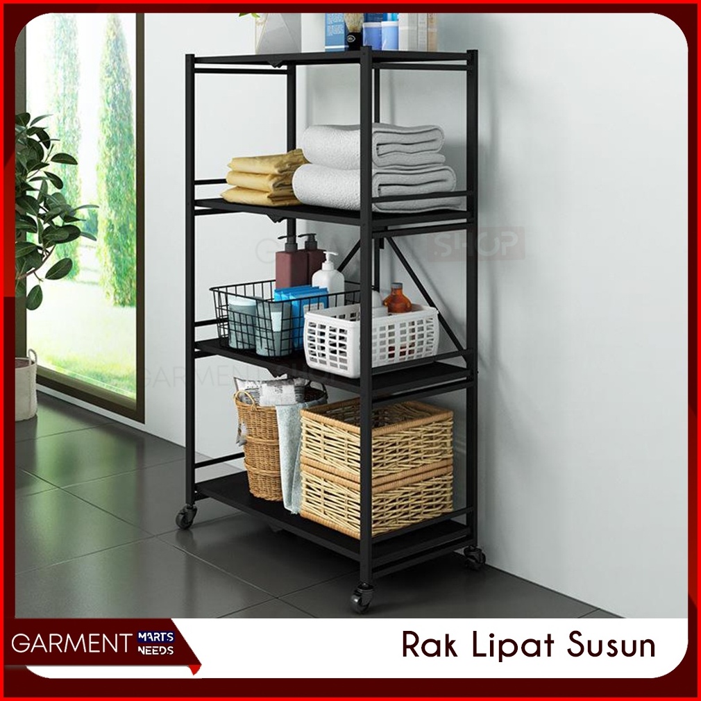 Rak Dapur Lipat Besi 3 Susun Tanpa Instalasi Kitchen Rack Penyimpanan Oven Microwave Multifungsi