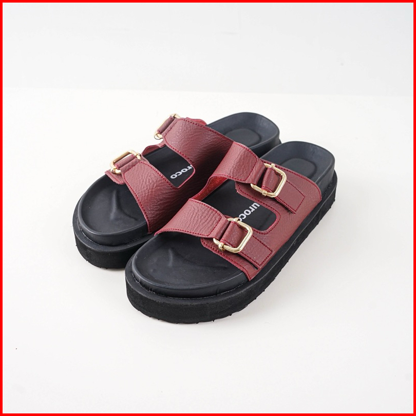 Mauroco - Carvia Sandal Wanita Kekinian Slip On Tebal Dua Strap Nyaman Stylis