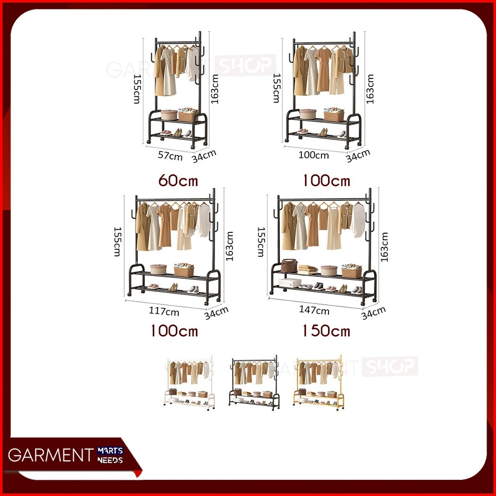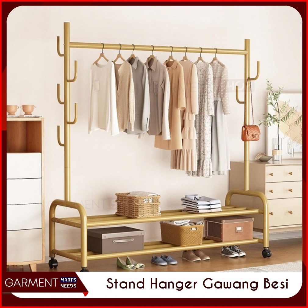 Stand Hanger Display Butik Baju Gantung Besi Hanger Jemuran Portable Tempat Sepatu Roda Dorong