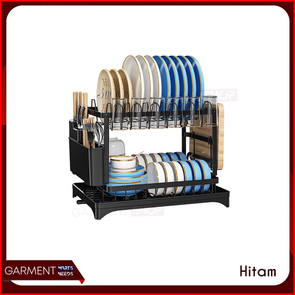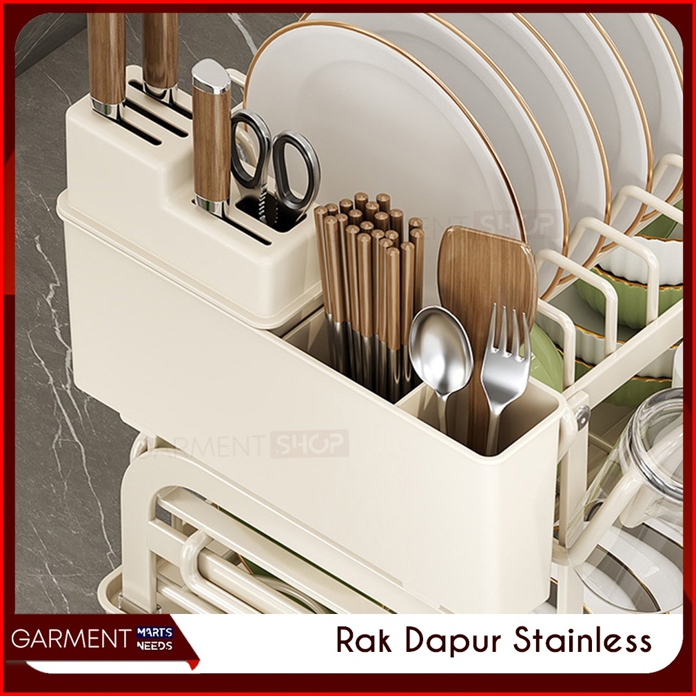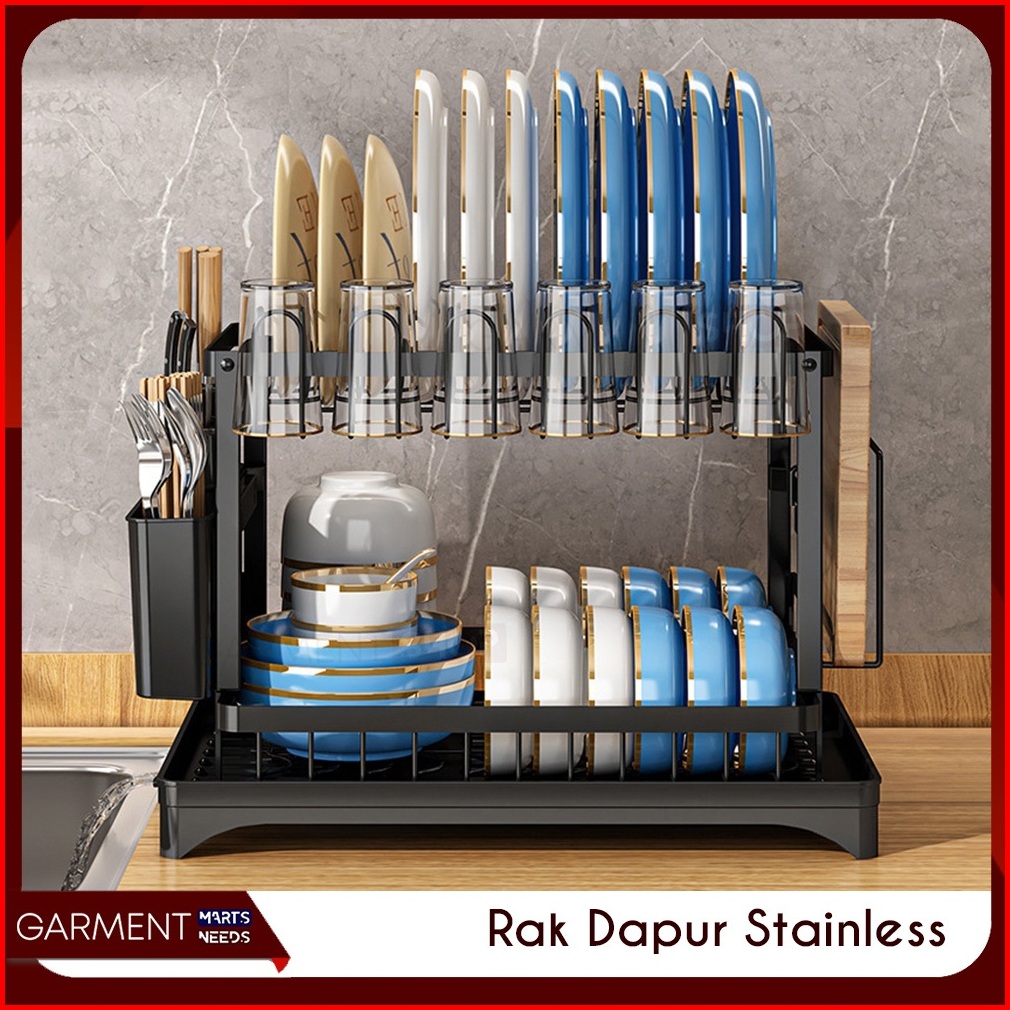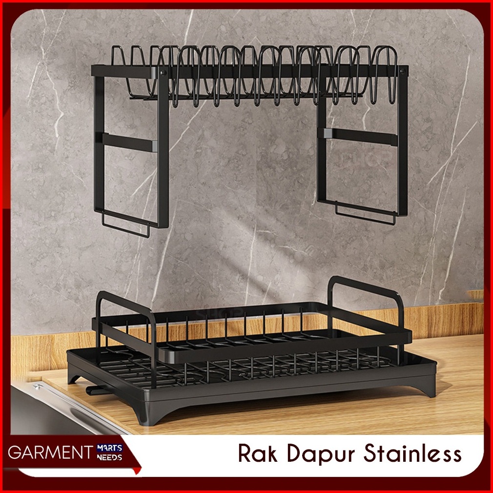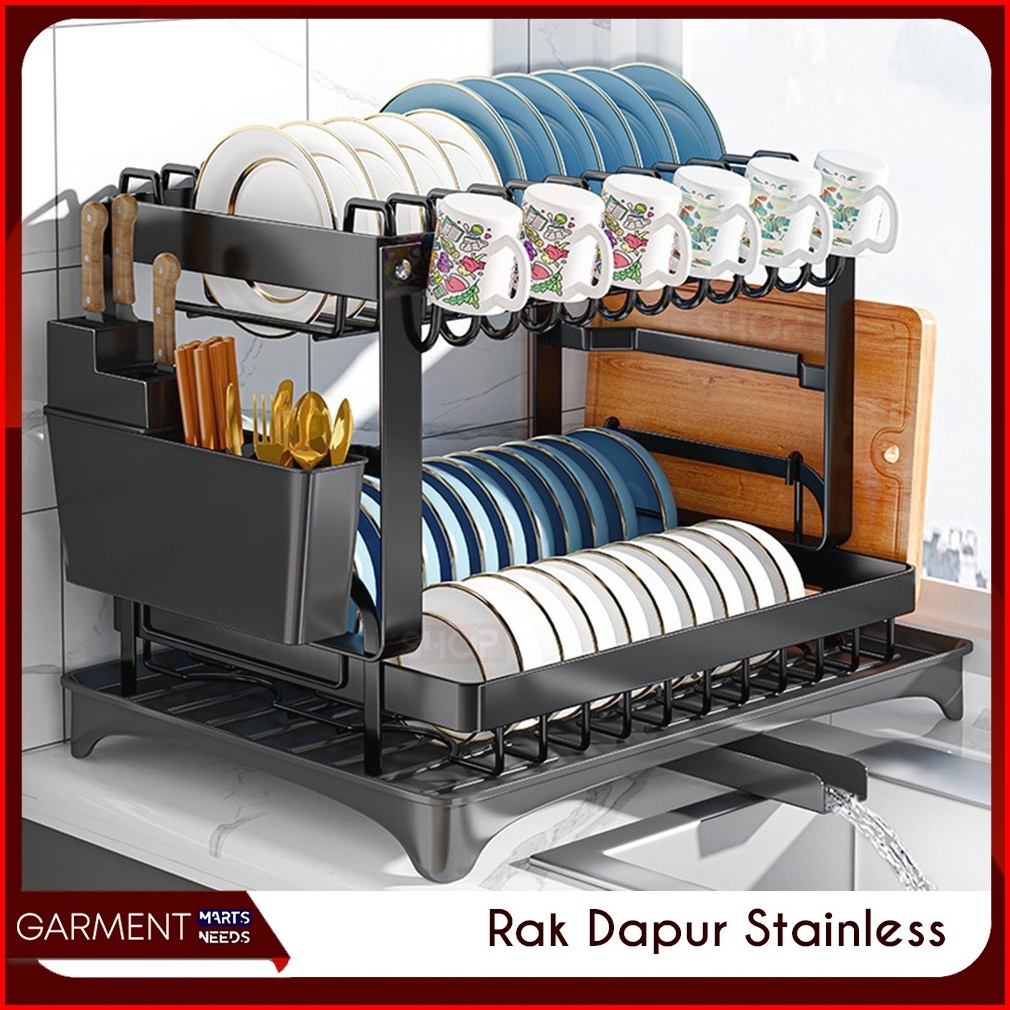 Rak Piring Dapur Stainless Pengering Mangkok Rak Cangkir Dengan Baki Dish Drain Basket Premium Tebal