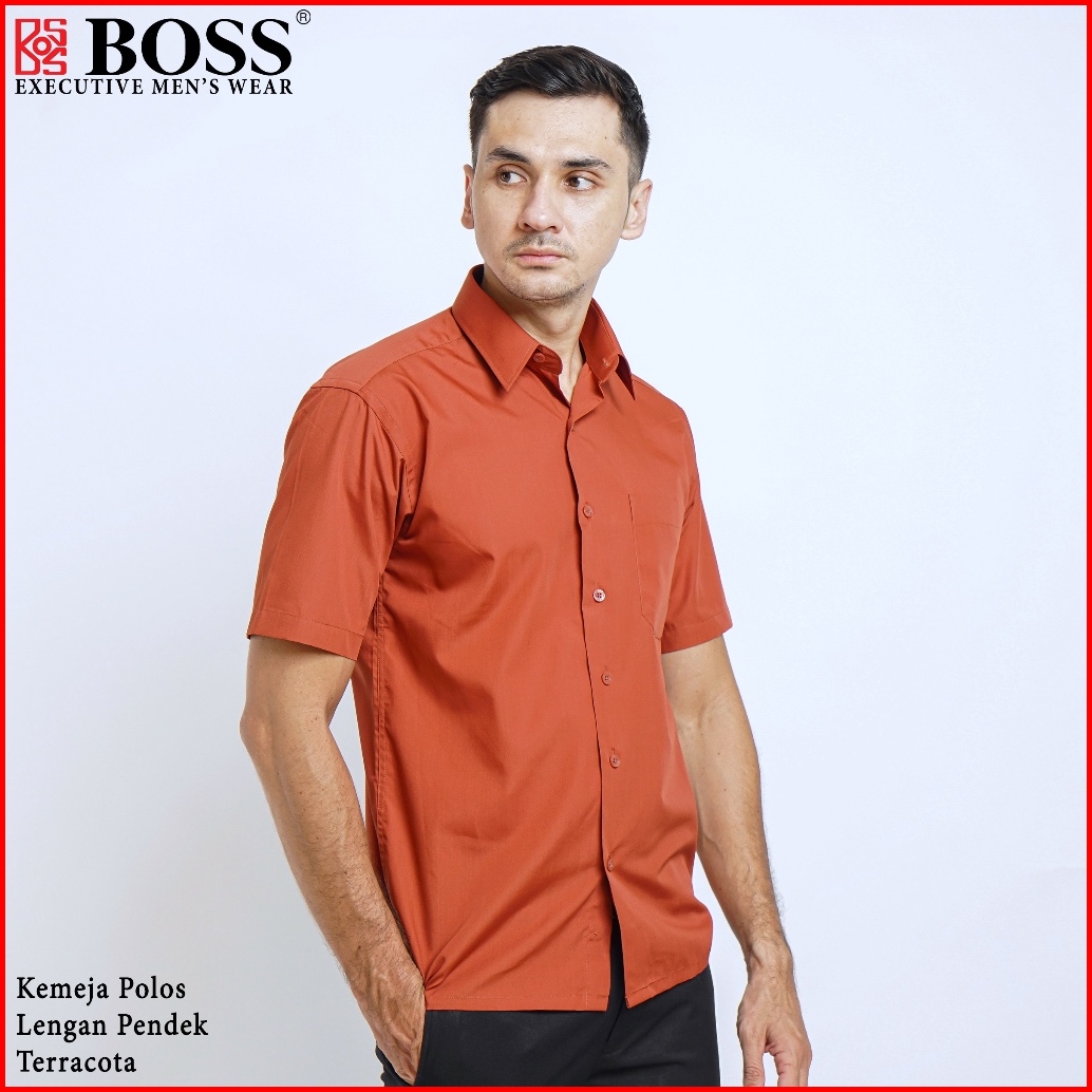 Boss Kemeja Polos Pria Lengan Pendek Regular Fit Coklat Terracota